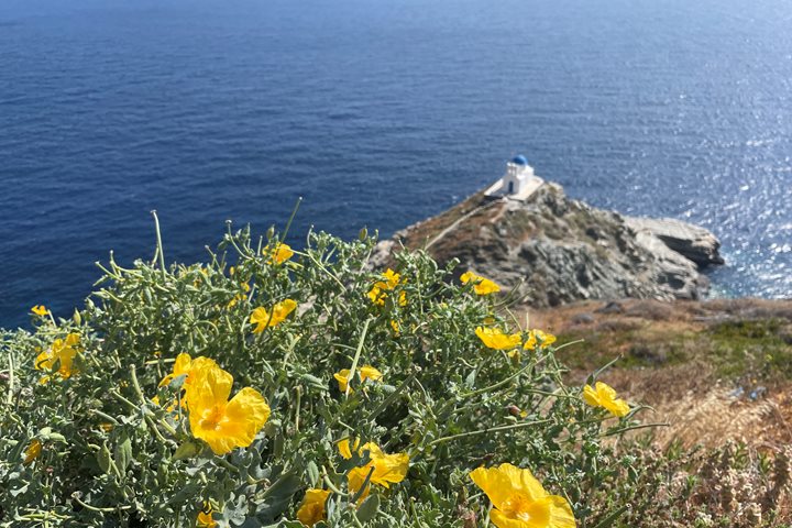 Our final morning finds us approaching the west side of the island of Sifnos, which had originally been our intended destination on the first day of this voyage a long week ago. Of course, one of the strengths of expedition travel is taking advantage of the opportunities to adjust the itinerary around favorable winds and quiet days at popular islands like Santorini, so we were happy to hear that we would be returning to visit the off-the-beaten track island of Sifnos after all.