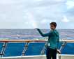 And this day isn’t done with us yet. Back aboard after the briefest of swims (there is a reason they call it a ‘polar plunge’), we sail out of the bay and almost immediately come across whales. Humpback whales. Their breaths mist up, their flukes dive down and then it happens: a mountain of whales rises from the water as they lunge side by side through a school of herring. They are cooperating down there, one whale blowing bubbles to encircle the fish they want to eat, while another voices a loud, herring-terrifying call. Then all come up together, mouths agape, streaming seawater as they gulp their catch. For them it is a way of getting the most herring possible; to witness it is spectacular. Usually between sets they surface in a working-whale way, but once they breach instead, three at once, as a fellow slaps his tail and another trumpets through his blowhole. It’s a symphony of whales, a contra dance where every partner weighs 40 tons.