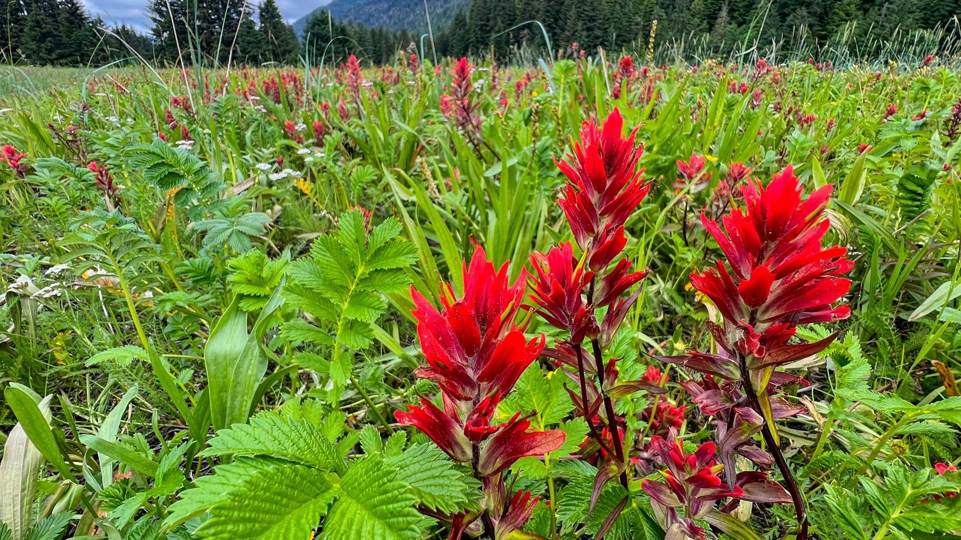 We then set out to explore this stunning bay by kayaking, paddleboarding, and hiking. I led one of the long exploratory hikes; we covered about 5 miles and saw a diversity of habitats. Some highlights included huge patches of bright red paintbrush flowers, eating berries, and many massive piles of bear poop.