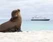 On arrival, we sighted a polar bear walking along the tundra between the two main glaciers. Below the foot of one of the glaciers, we saw dozens of beluga whales swimming. After lunch, we jumped into the Zodiacs for a tour around the bay, where we got to see the polar bear and the beluga whales a little closer. We also enjoyed incredible sightings of a pure white Arctic fox, bearded seals, a ringed seal, and many beautiful ivory gulls.