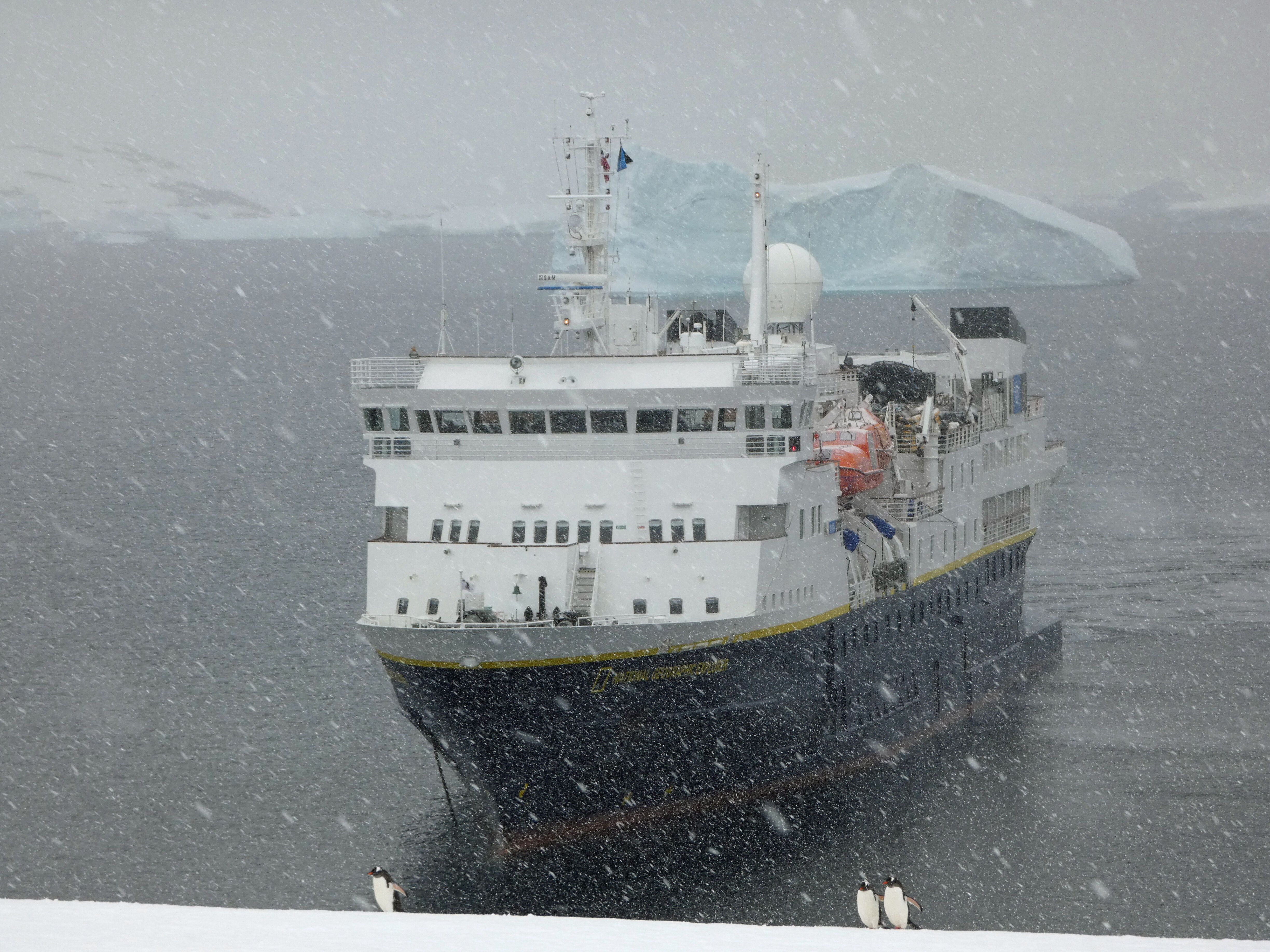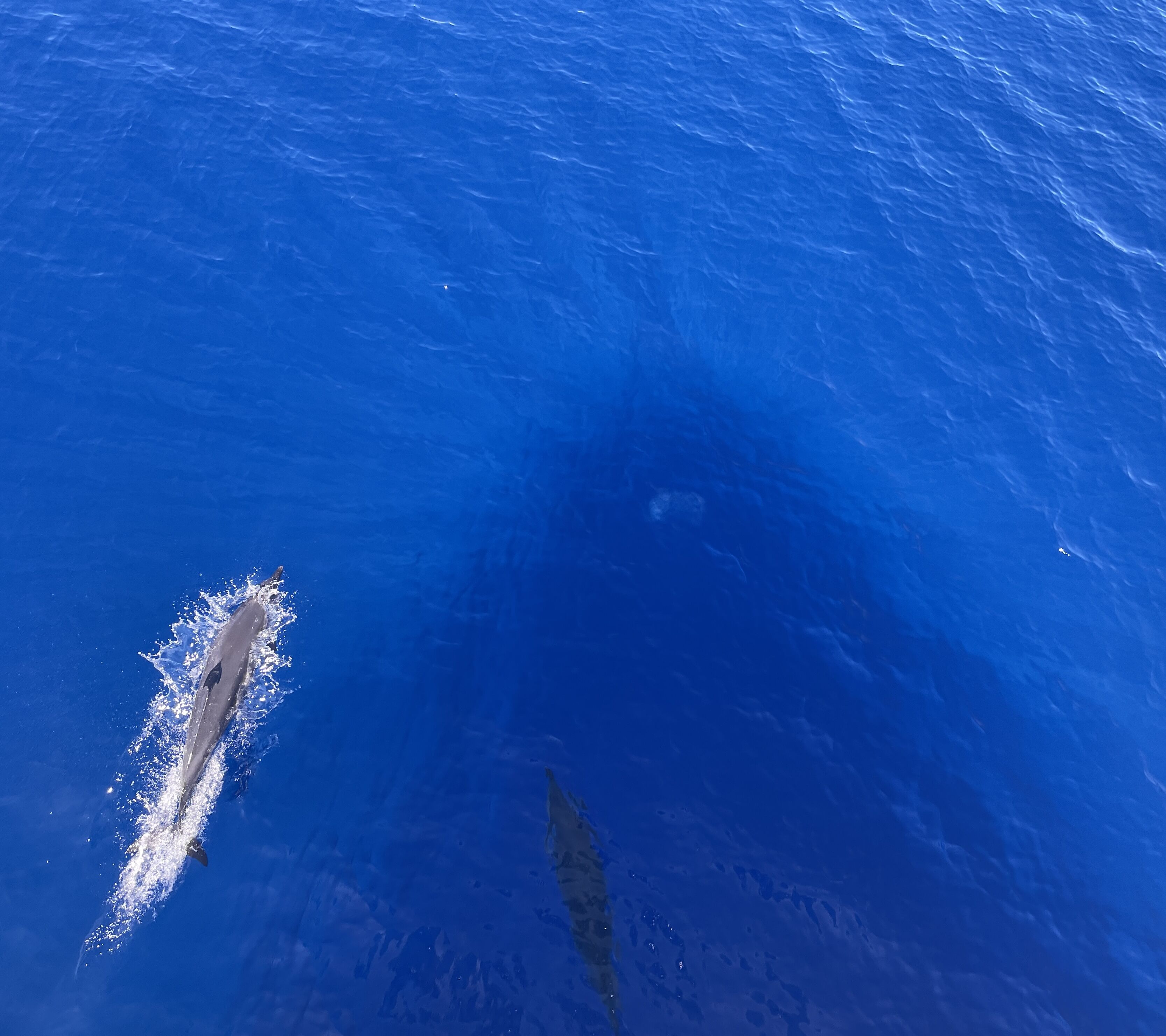 After breakfast, naturalist Lisa Hornak began a presentation on her work but was promptly interrupted by a pod of pilot whales! Everyone rushed to the bow to get a look at these beauties. We were easily distracted by the pantropical spotted dolphins that came to ride the bow and entertain us for quite some time. The dolphin treat was followed by a synchronized pilot whale show! The cetacean viewings were incredible, and it was only 10:00 a.m. We resumed the program, and Lisa presented her work on how climate change is affecting a small community in India.