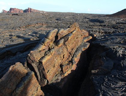 In the late afternoon we headed off with our guides for a “lava hike.” At Sullivan Bay one can walk on the extensive 117-year-old pahoehoe lava fields and photograph the amazing and varied textures. It was warm out when we started the walk—after all here we are on the Equator, on a pitch black lava flow! But by late in the day the breeze cooled us slightly and another small group of penguins delighted us as we returned to the ship. Wow—what a superb and amazing day in las islas encantadas!