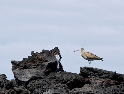 The afternoon was windy and cool. We took the Zodiacs to the edge of the same lava flow we had seen in the morning Zodiac ride and disembarked straight onto the lava for our afternoon hike at Sullivan Bay. The lava at this northern end of the flow is of the pahoehoe type, ropy and smooth, and with an amazing variety of textures and forms, but easy to walk on. We took countless photos of the lava and saw a few pioneer plants that have started to grow in the lava. Enroute back to the ship, our pangueros found three penguins standing on shore and we were able at last to photograph these charming little birds.