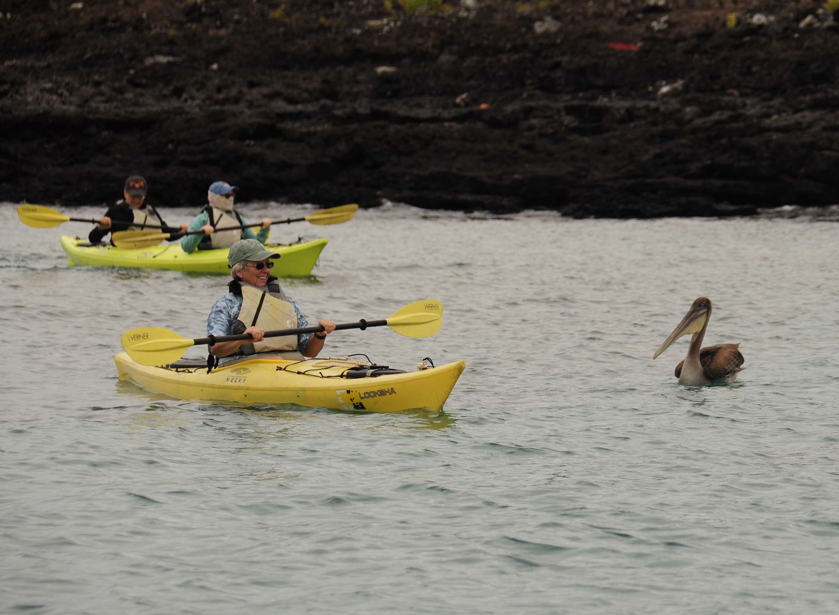 After breakfast, we explored the edge of this extensive lava field by kayak or Zodiac. We saw many brilliant red Sally light foot crabs feeding, striated herons stalking fish and baby crabs but we could not find any penguins.