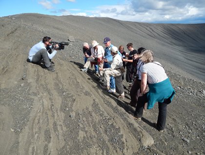 In the afternoon at Sullivan Bay, lava flows became the topic of a geology lesson. As a naturalist guide, I tried to engage everyone in an educational game. I changed the rules and decided to play hide-and-seek with our young and adult explorers. Turn back, count to 20 and try to find me! After two minutes I stretched my neck out of a lava flow collapse and explained how important it is not to explore recent geological formations on your own. Most areas may not collapse but you do not want to risk falling into such a dark place.