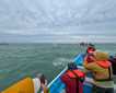 As soon as we awoke, we observed the mesmerizing landscape of Sombrero Chino. This is a very small islet with a central non-active volcano, perfect for early morning pictures and the beginning of our adventures. Kayakers, with the company of playful Galapagos sea lions, enjoyed a smooth and relaxed time in a channel formed between Sombrero Chino and Santiago Island. Afterwards, the blue waters of this canal gave us a chance for wonderful snorkeling, with the company of colorful fish, white-tipped reef sharks, and the unique Galapagos penguins.