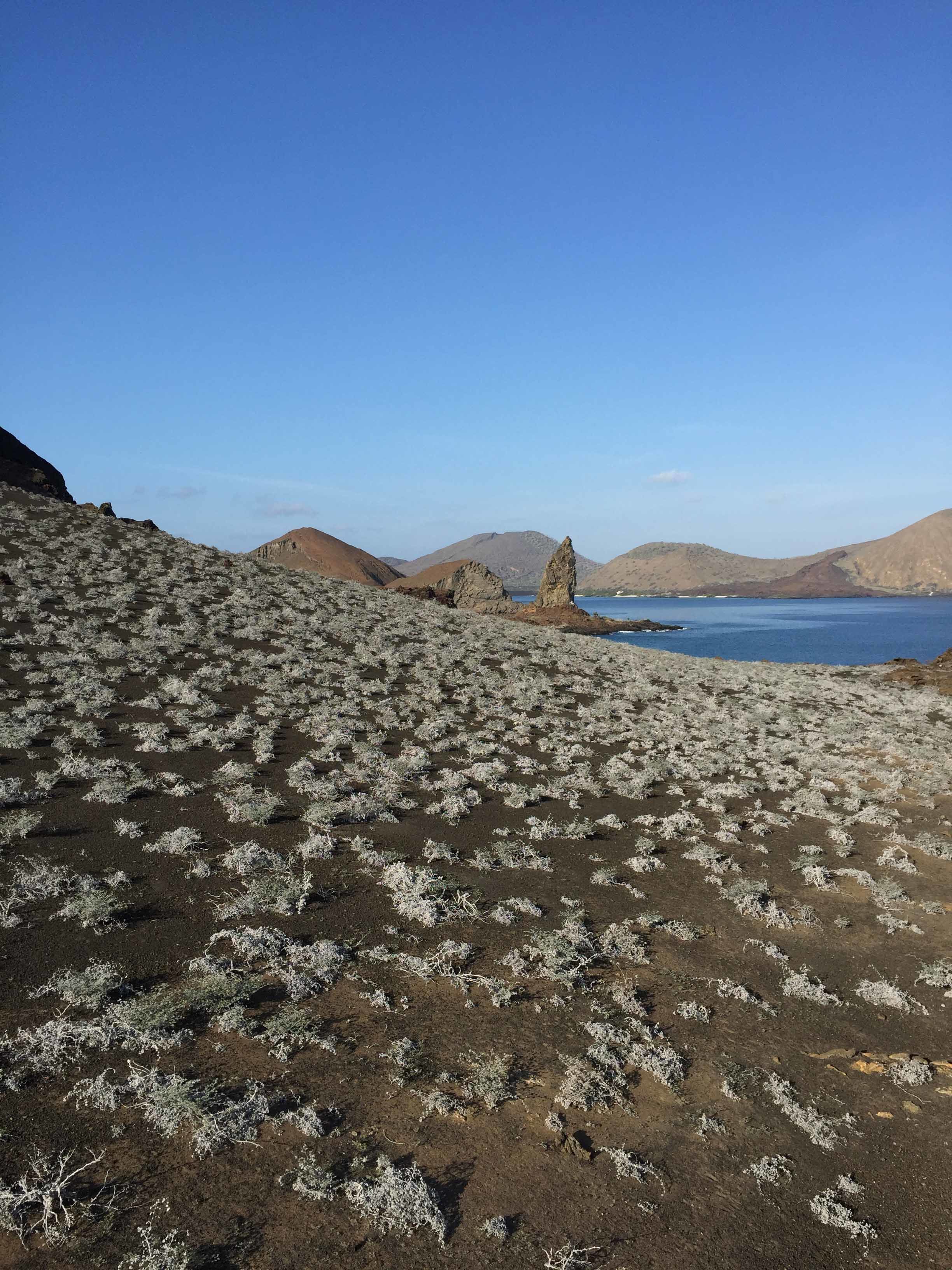 One of the most charming landscapes to be seen here is the lush covering of portulaca. Low elevation allows one to see it at nearly every angle along the ground. At higher elevation we cross resting sea lions, and nearly every seagull spotted here is grounded, caring for their nested young.