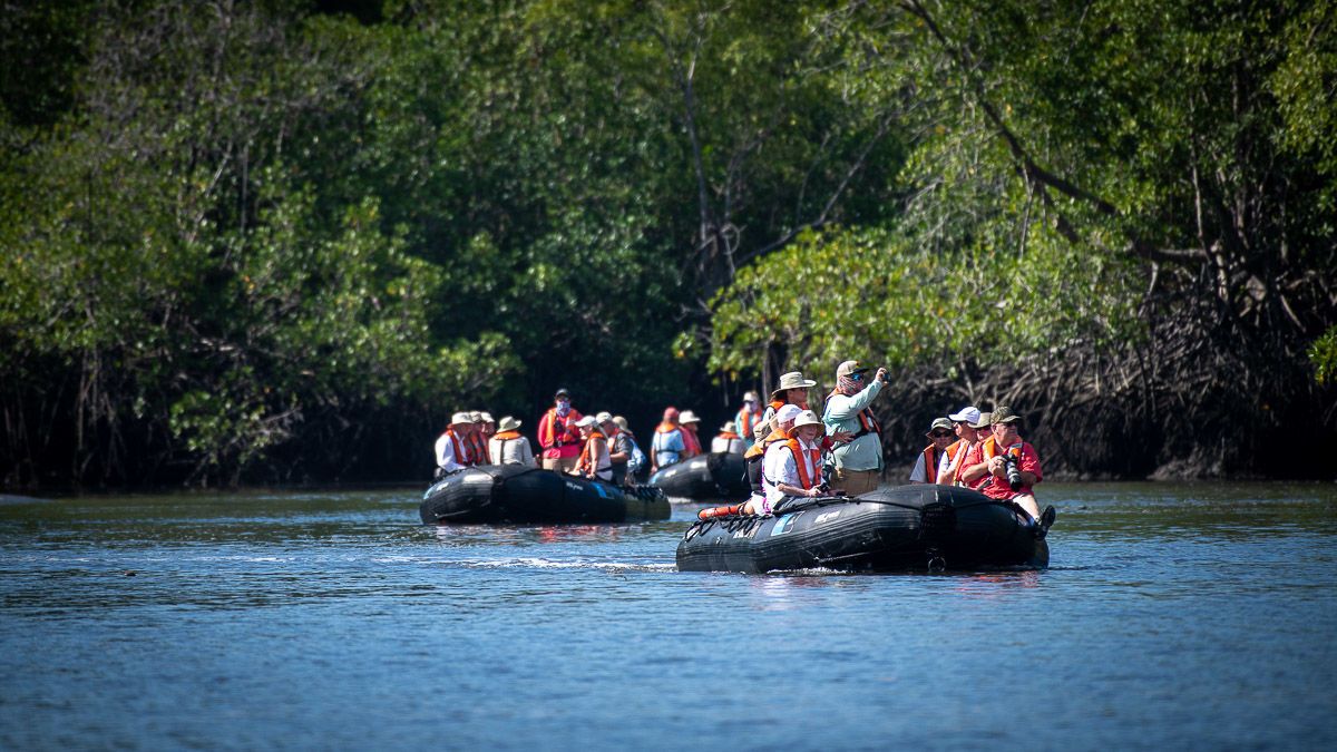 The day began with an early pre-breakfast disembarkation at South Plaza Island. Our first wildlife encounter came in the form of playful sea lions found in nearby pools. We then saw Galapagos land iguanas along our trail, this was followed by several seabirds such as swallowtail gulls, magnificent frigate birds and red bill tropicbirds.
