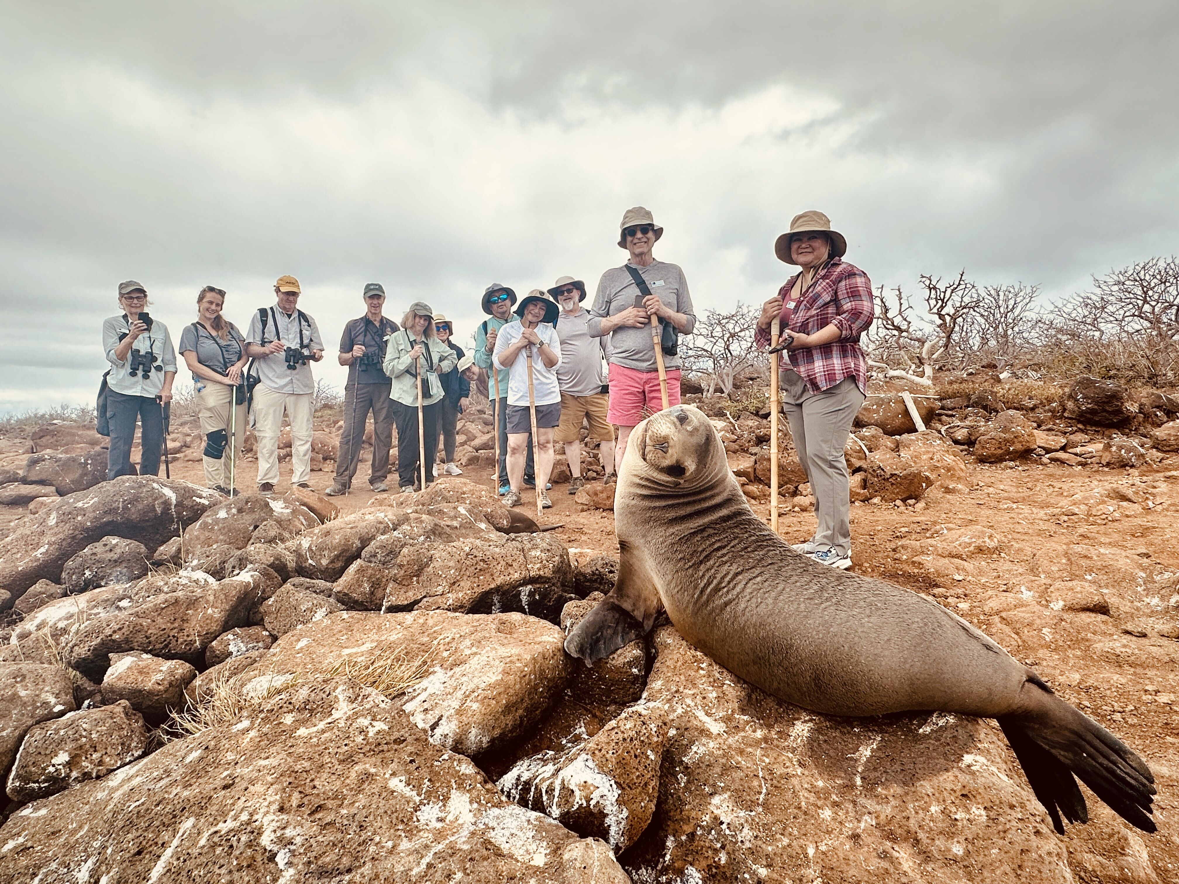 We started the day with excitement as we landed on the beautiful, pristine coast of Isla Genovesa - a true birder’s dream. Along the sandy beaches and steep cliffs of Darwin Bay, we were surrounded by an incredible array of birdlife. Frigatebirds soared closely overhead with their red pouches on full display, while Nazca and blue-footed boobies nested along the rocky ledges. Swallow-tailed gulls called out as we walked past. In the distance, we saw the stoic and elusive short-eared owl. The island was alive with color, sound, and constant movement. Between our excursions to Isla Genovesa, we snorkeled near Prince Philip’s Steps and discovered a vibrant world beneath the waves. Schools of fish swirled around us, a fur seal turned in the water as if dancing on cue, and sea lions relaxed nearby. As our last snorkeling adventure came to a close, we spotted a sea turtle resting calmly in a crevice. As the sun retreated into the sky on our last return to National Geographic Endeavor II, we reflected on the sheer magnitude of what we witnessed on our last full day. Isla Genovesa, like the other islands, gave us a connection to a sacred world. The harmony between land, sea, and sky reminded us how deeply interconnected, vital, and fragile these ecosystems are. Watching birds tend to their nests and marine life swim effortlessly, we were struck by how little space there is between wonder and reverence. We recognized that our journey wasn’t just about observing unique wildlife, it was about feeling part of something grander and beautifully ancient.