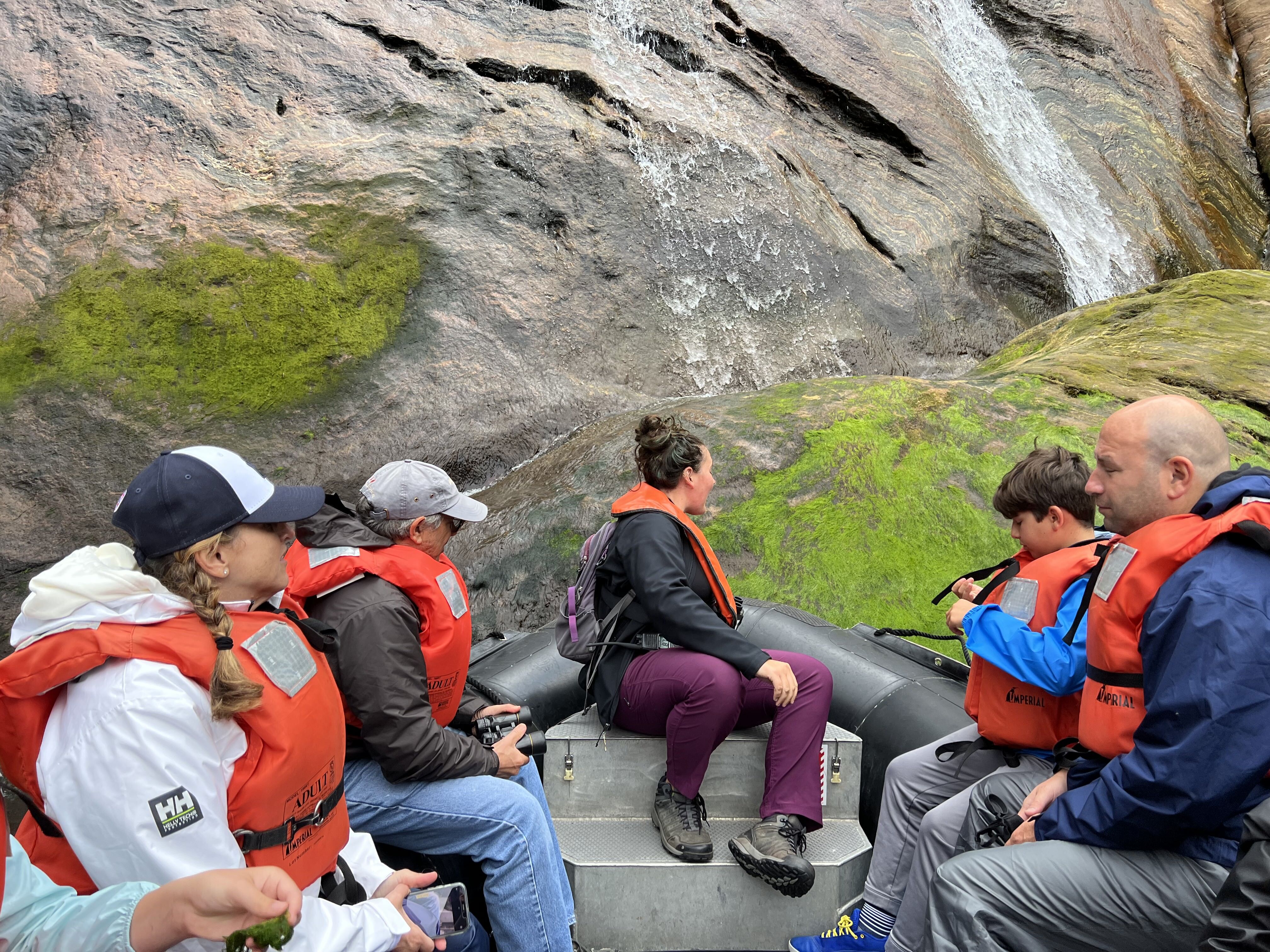 We made our way back toward Tracy Arm to begin our navigation to South Sawyer Glacier. The steep walls of granite were teeming with waterfalls, glacial striations, and glacial chatter marks, showing the power that water, fresh and frozen, can have on the landscape no matter how much time passes. The depth of the fjord, coupled with its well-polished perimeters, holds a striking resemblance to other places of natural wonder, such as Yosemite, for many of our explorers.
