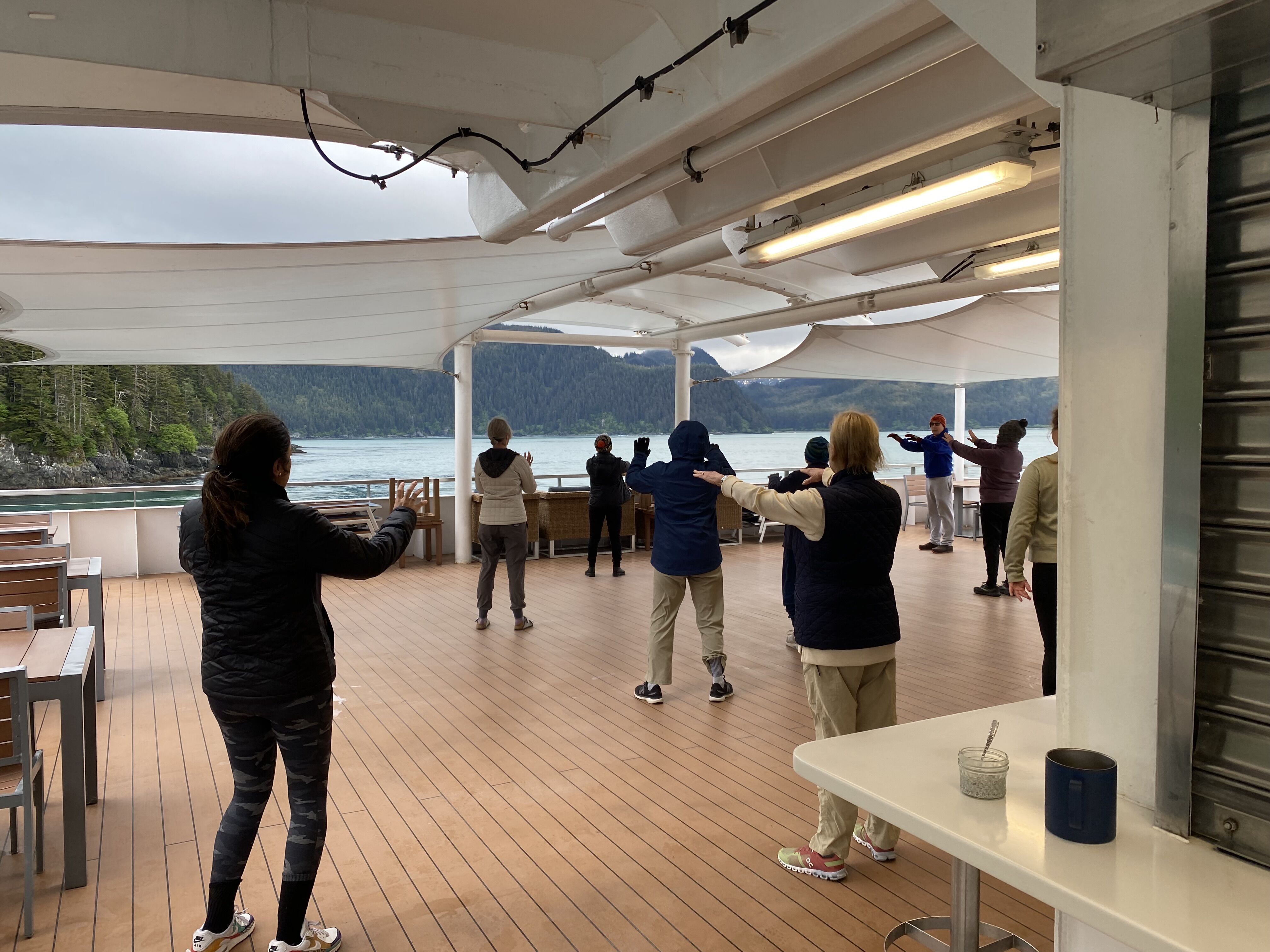 Along the remote, northwestern edge of Southeast Alaska, our expedition took us on a journey to the mystical Salt Chuck Bay. We embarked on a day of exploration into the forests and up a hill to a remote muskeg, where shore pines sat in an open, mossy clearing. Since it was low tide, we ventured across the intertidal zone which revealed its secrets, unveiling a hidden world teeming with vibrant marine life. But our adventure didn't stop there. Guided by the call of adventure, we glided through the pristine waters of Salt Chuck Bay, our kayaks silently slicing through the mirrored surface. After lunch, we boarded Zodiacs to venture closer to the shorelines of this archipelago. Within a few minutes, amidst the grandeur of nature, we were greeted by an unforgettable sight – humpback whales feeding and diving against the backdrop of rugged cliffs and breaking waves. Steller sea lions basked lazily on rocky outcrops and hunted for fish in the pass as the current ripped and whirled underneath our boat. “I have no words,” proclaimed someone in our Zodiac. The unyielding beauty and enchantment that can be found within the heart of Alaska's untamed wilderness were in full force today.