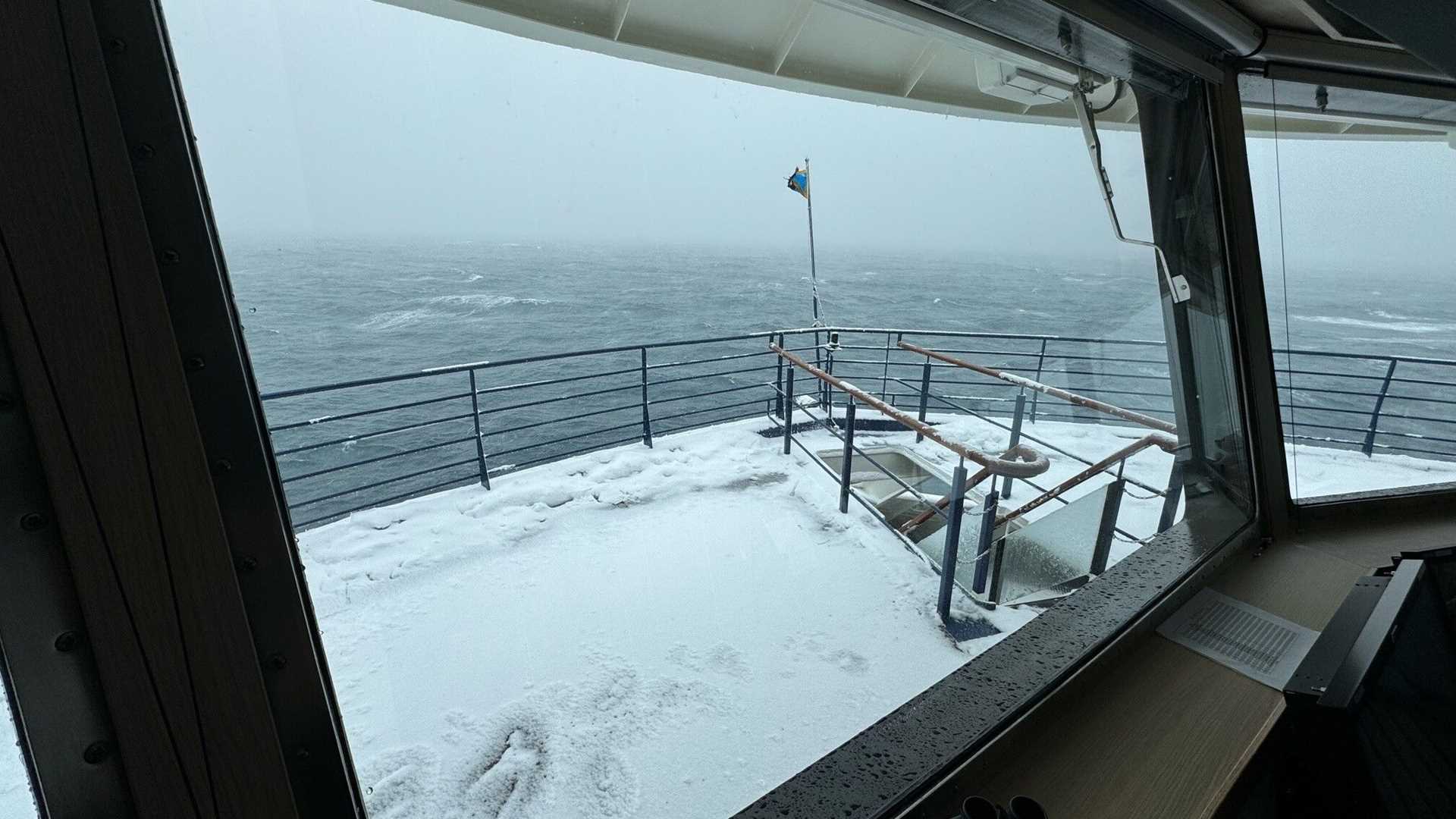 Today, National Geographic Endurance continued its northward journey from the Ross Sea toward New Zealand. It was the cloudiest day of the expedition, enveloped in dense fog, accompanied by intermittent snowfall. The sea state was favorable, with gentle waves coming from the stern, providing a smooth ride. It offered a perfect opportunity to unwind and take a breath before our upcoming visit to New Zealand's subantarctic islands.