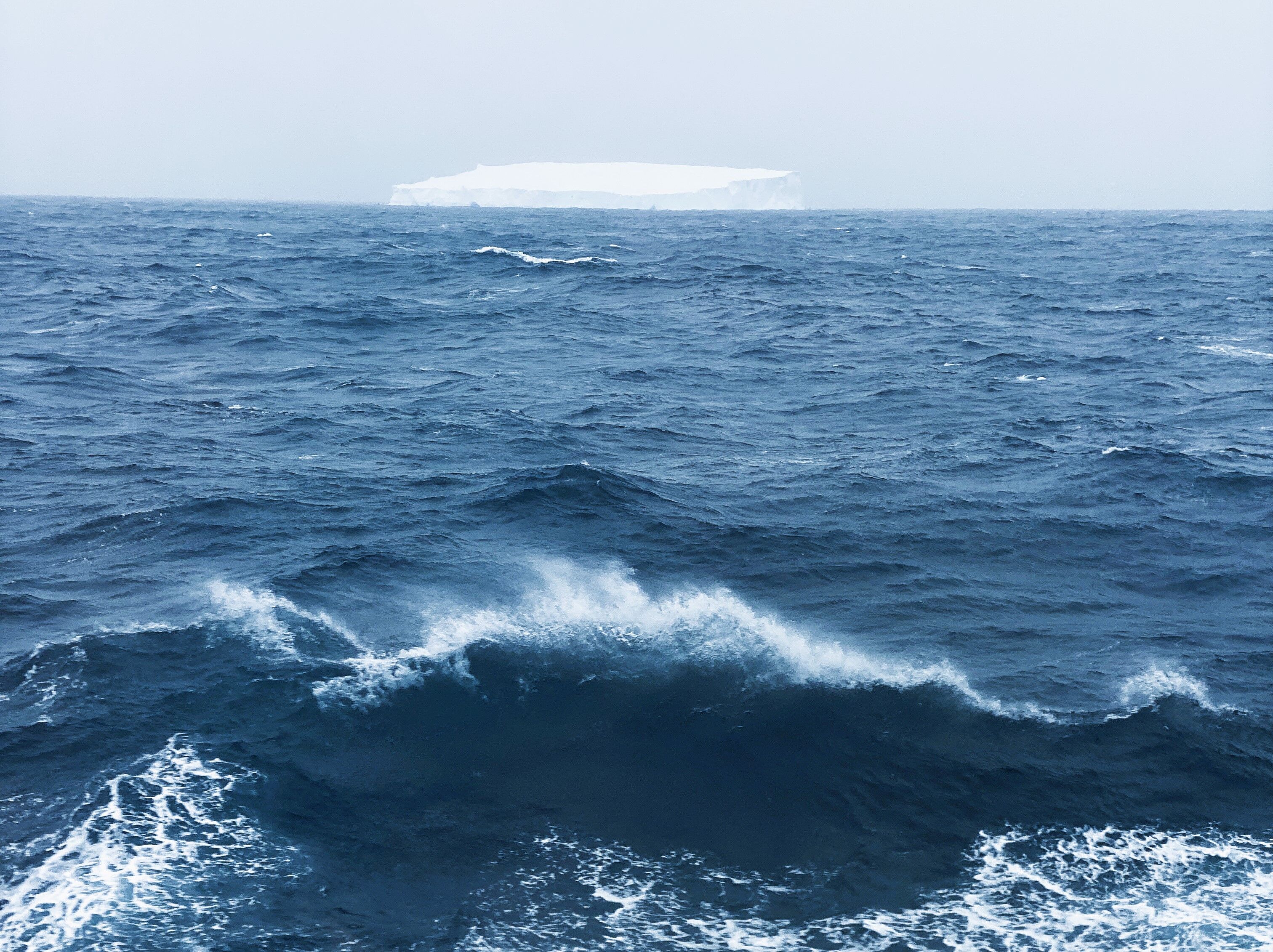 We are making progress sailing south in relatively calm seas, and we cannot wait to see Antarctica for the first time of this voyage. We can feel its closeness. The skies are moody grey, and the seas are deep blue. The temperature has dropped considerably, and the fog is dissipating as if we are entering another dimension: the polar front. The biological boundary that converges with warmer waters from the north, creating a nutrient-rich marine environment, is upon us. Soon, all eyes are focused on the first iceberg spotted in the distance!