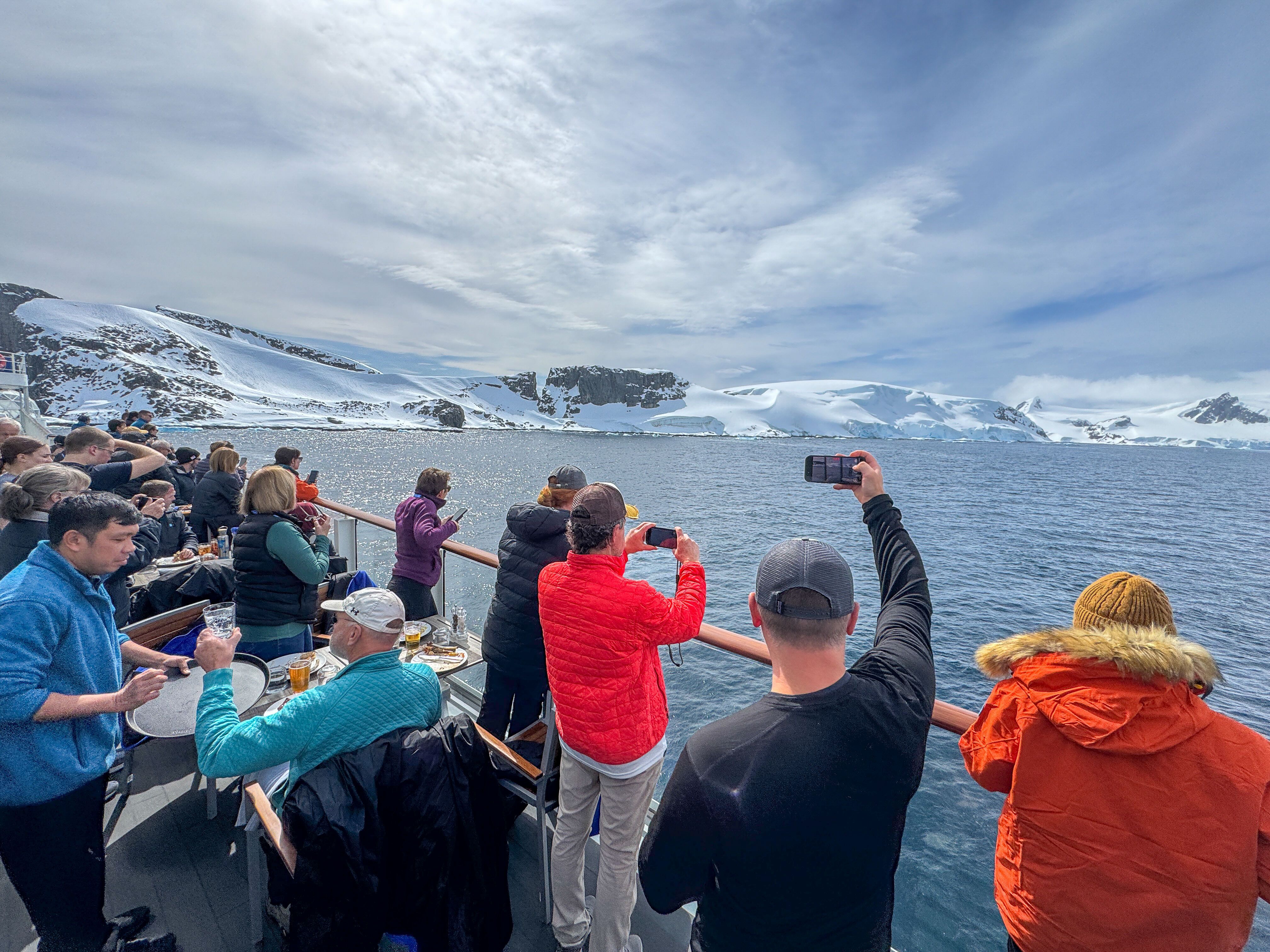 Waking up to blue skies and humpback whales, we commenced our morning operations at Spert Island. On the agenda was a Zodiac cruise weaving through the narrow channels that run through the tall basalt cliffs. On return to National Geographic Resolution, the hotel team provided everyone with a surprise BBQ on deck eight, which we all enjoyed while watching humpback whales feeding around us. We then detoured slightly to Deception Island on our way over to the Weddell Sea.
