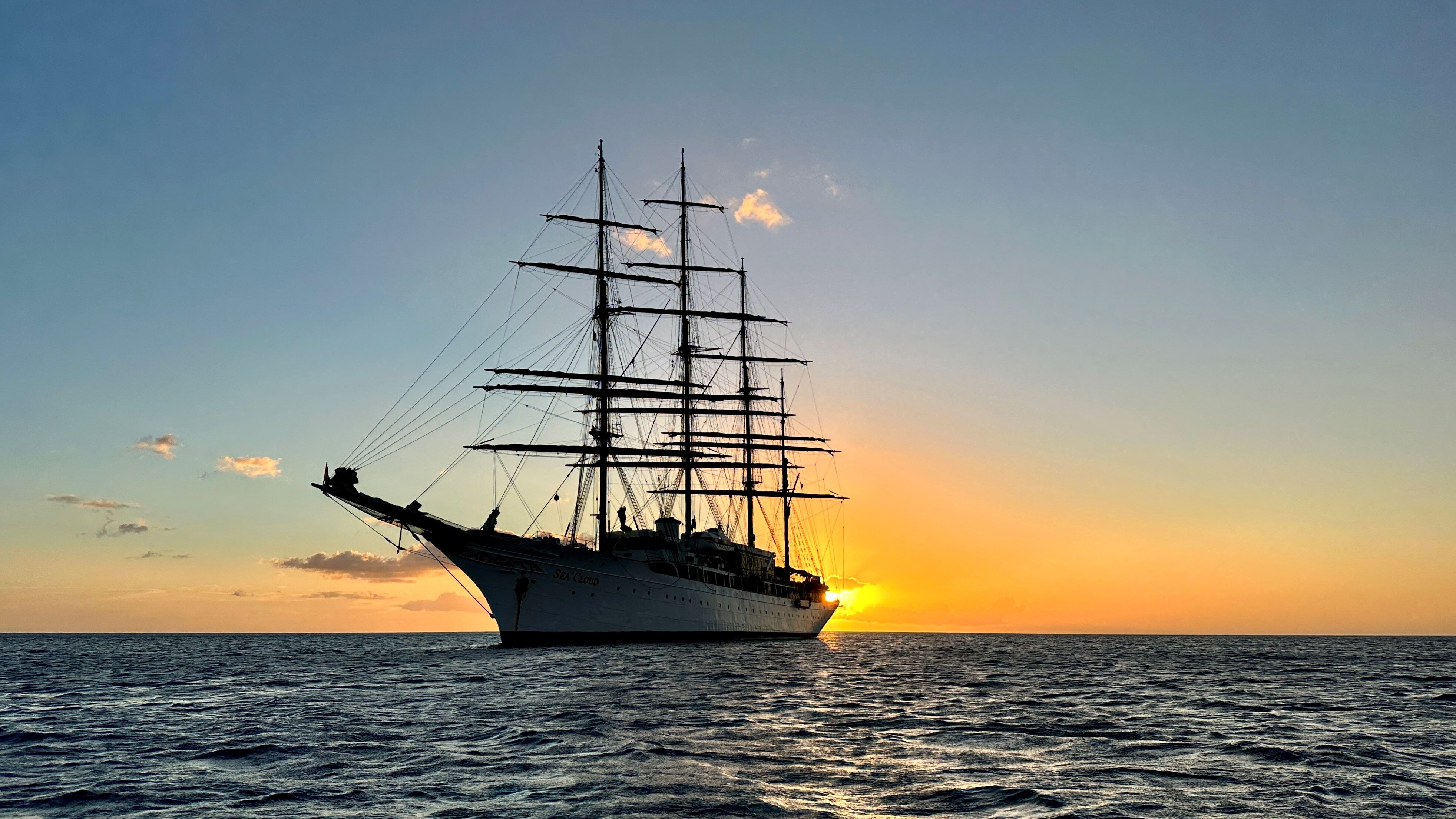 The sun rose this morning over mountainous St. Lucia at 6:10 a.m. We were making 5.7 knots with a wind 18mph on our port beam. The temperature was a balmy 82˚. Captain Nemerzhitskiy brought us within an easy view of the lush green west side of the island of St. Lucia. St. Lucia is approximately 212 square miles and has a population of 182 thousand. The earliest inhabitants likely reached here sometime around 600AD and called this island Ioüanalao which means “Where the Iguanas are Found.” We motored past the Hess oil distribution center just inside Grand Cul de Sac Bay. The oil is brought here in large tankers from Venezuela and then distributed throughout the islands. By 9:15 a.m. I could see the majestic Pitons rising directly off the forward port side of Sea Cloud. The Pitons “Petit and Gros” are volcanic plugs and have now been designated a UNESCO World Heritage site for exceptional natural beauty. St. Lucia is called the “Helen of the Caribbean,” reminding us that she is as beautiful as Helen of Troy. Sailors went to their stations and we were under sail by 9 a.m.
