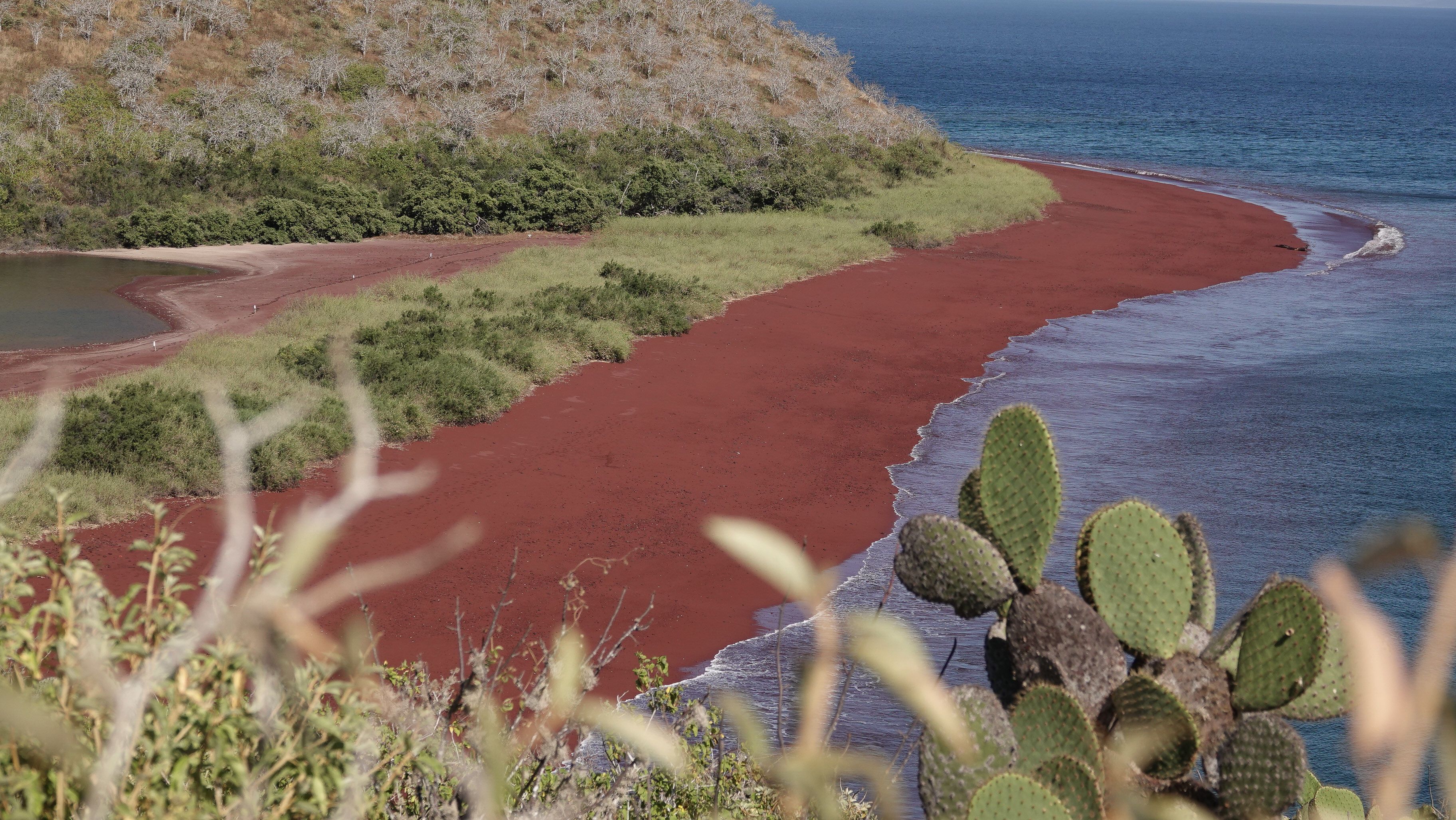 Walks over pa-hoe-hoe until it met red scoria was followed by snorkeling with penguins and other delightful marine creatures. The afternoon reversed the activities, snorkeling with turtles was followed by a hike up to a vista unique to Galapagos – and the sun shone all day.