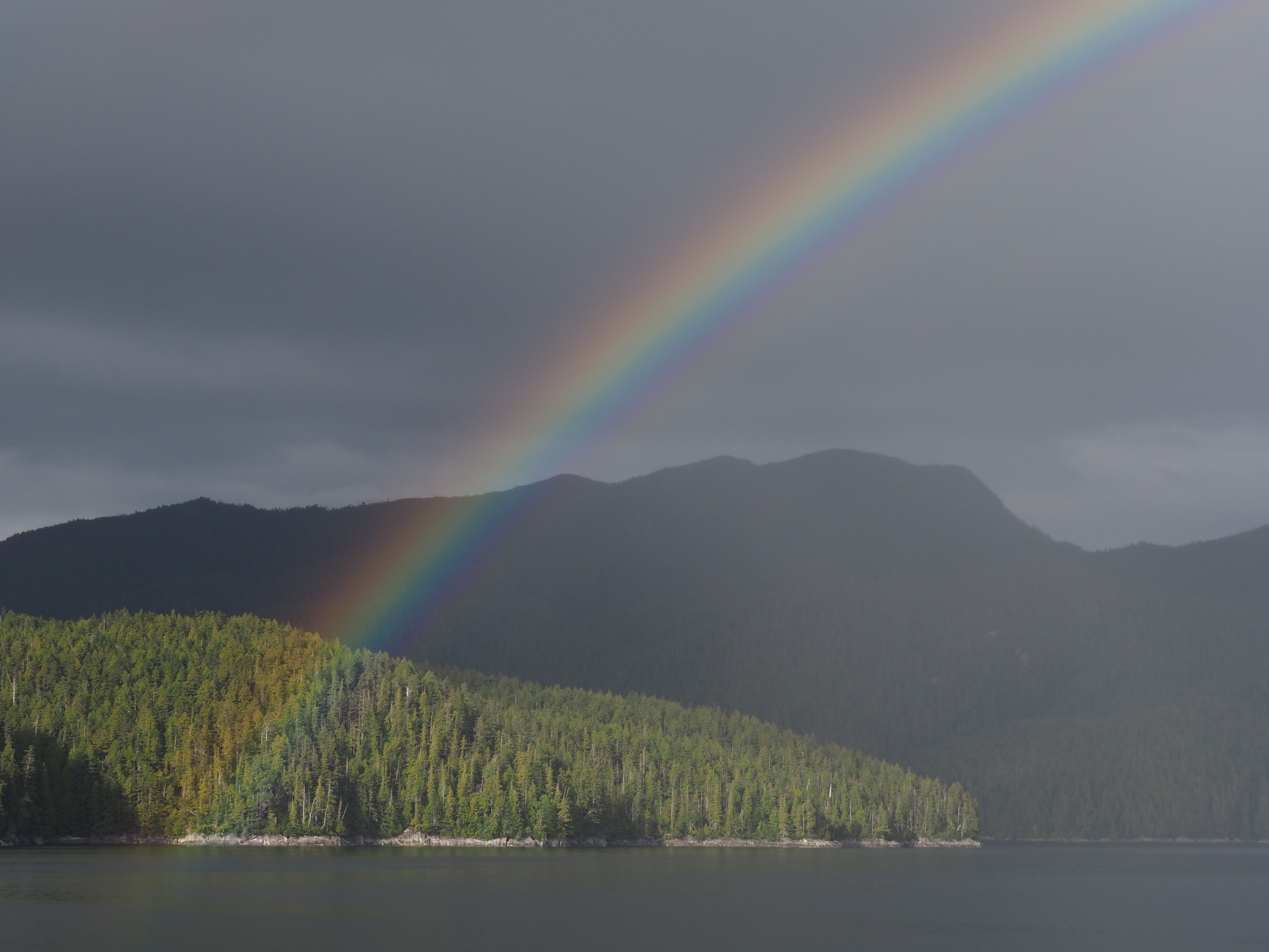 This morning, National Geographic Quest awoke in a beautiful fjord on the east coast of Baranof Island. Vestiges of the ice that carved Takatz Fjord clung high in the alpine, and we tried to envision what this area must have looked like under 3000’ of ice not that long ago. Like an older version of Tracy Arm, this fjord has had more time for plant succession to cover the rounded domes shaped by ice.