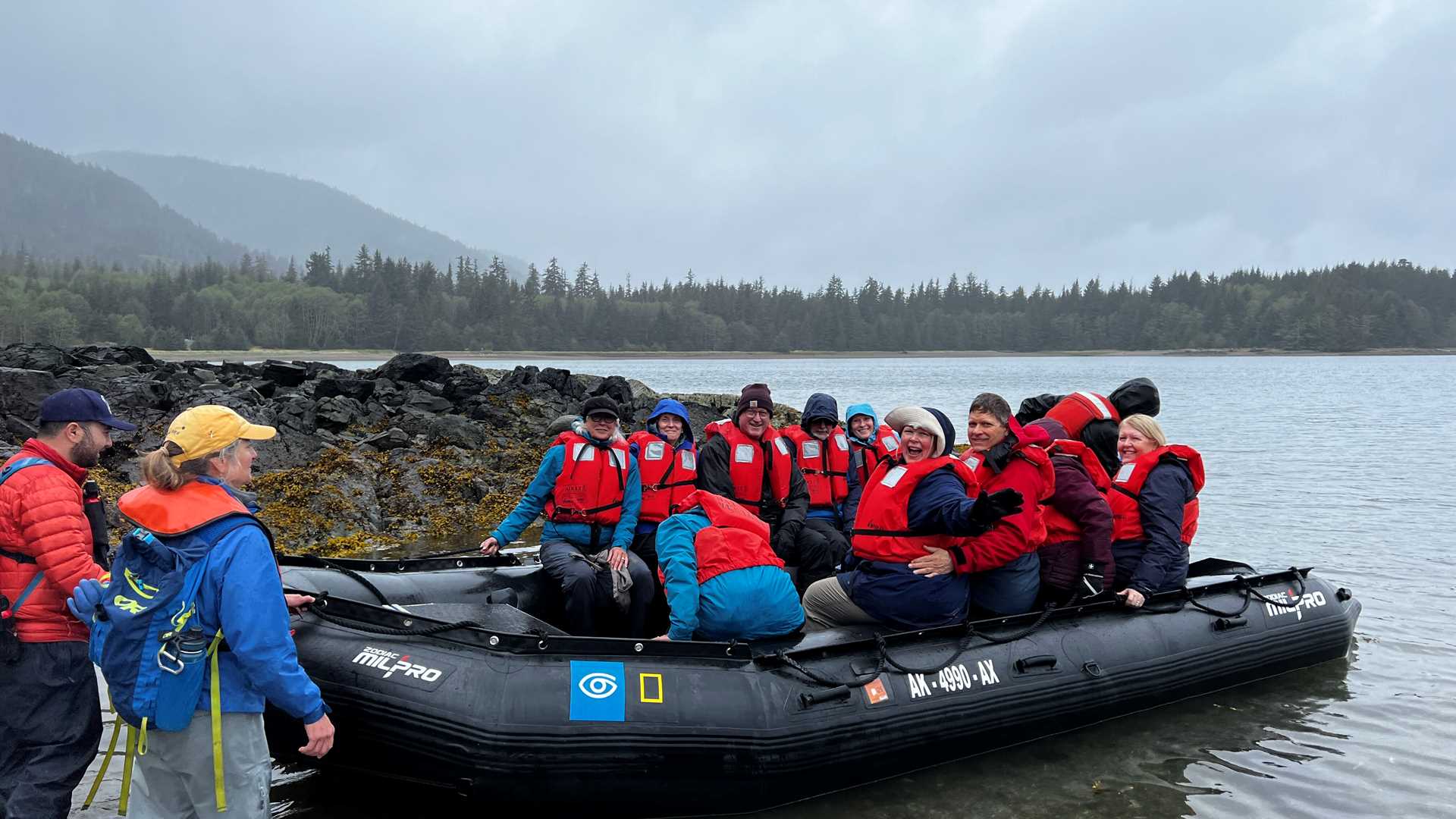 After a presentation on humpback whales from our National Geographic explorer, Lauren Eckert, we tucked into the protected Tenakee Bay and explored the shoreline by foot. Our hikes revealed fresh bear scat, a brown bear claw, blooming skunk cabbage, emerging earth worms, a mosaic of lichens, frolicking ravens, bounding deer, a pair of adult bald eagles, and a rare Northern goshawk. Bushwhacking was the name of the game, and arguably the best way to collect stories in this unique bay. We swapped these tales as we cruised Chatham Strait, where the rain continued, and the dark gray closed out a memorable day.