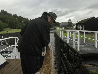 We spent our day making a truly remarkable passage, through the heart of the Scottish Highlands, by water. The Caledonian Canal is among the greatest engineering feats of the early 19th century, built for a war that was over before the canal was completed, and still important for merchant and military shipping today. The canal follows the Great Glen, a tremendous geologic suture formed in Scotland’s deep past when two ancient continents collided, leaving a fault that has been cut into a deep valley by the glaciers of the ice ages. With a series of lock chambers and manmade channels, the canal connects the four freshwater lochs that lay in the Glen into a chain that reaches across the breadth of the nation, from sea to stormy sea.