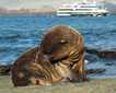 When we arrive at The Dalles Dam, barges are filling the lock so arrangements are made for our motor coaches to meet us at a landing just east of the lock. While waiting we can just see the snow-clad slopes of Mount Hood, a giant stratovolcano, through the clouds. A bald eagle soars in and perches in a small tree along the shore. From here it makes some short forays out over the water, as if to catch a fish. We launch our expedition landing craft and go ashore at a small dock and board the coaches for the ride to the Columbia Gorge Discovery Center. On the drive we notice the presence of trees, something we have seen little of east of here where the rainfall is much less.