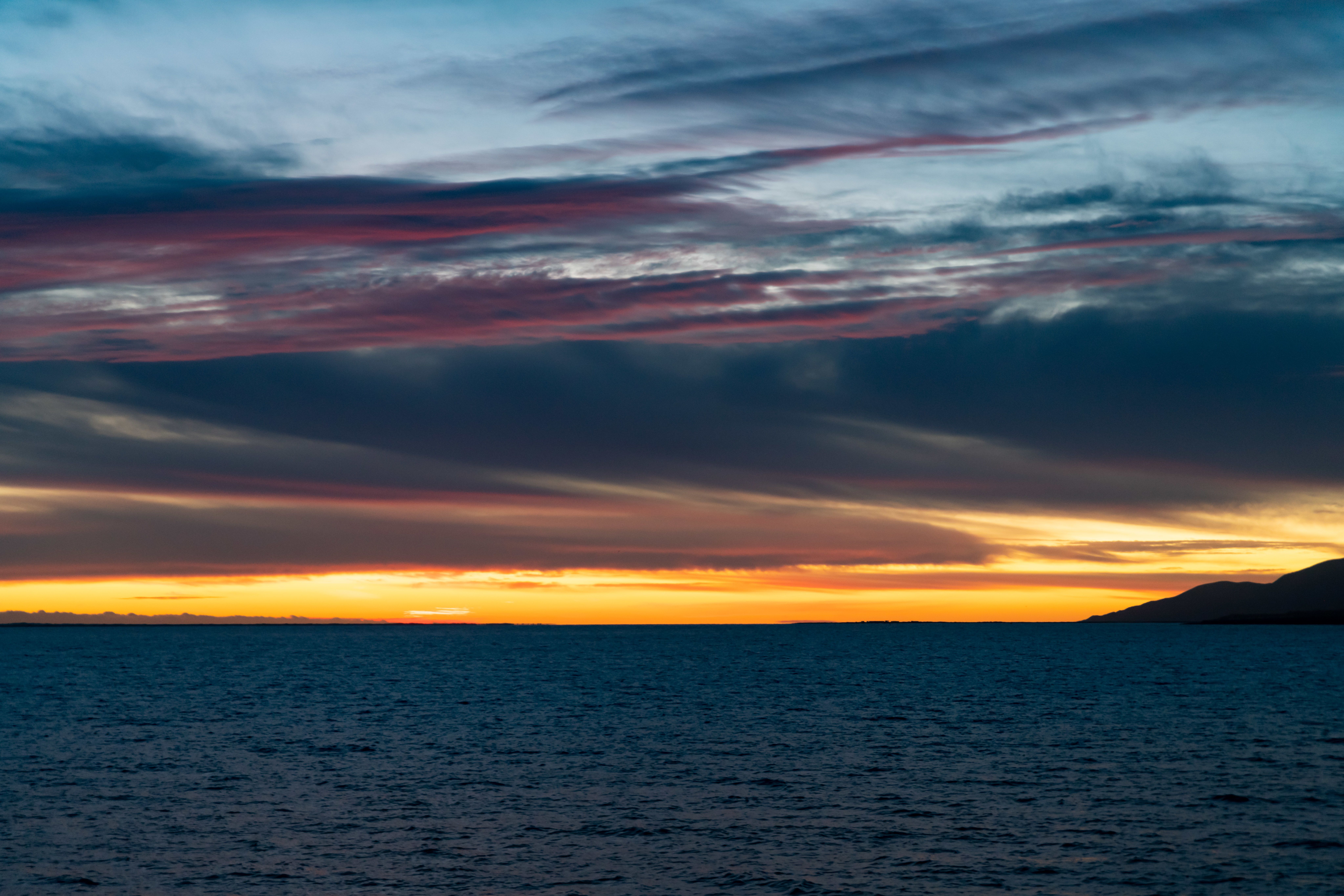 This morning, we had a later start than usual after a late night enjoying the crew show. Our galley team gifted us with a fulfilling brunch. We then had a brilliant forum about climate change with the participation of our panel of experts onboard. Afterward, our expedition leader called us to the bow to see Cape Horn, which was only a few miles ahead. The good weather allowed us to have a smooth and fast crossing, allowing extra time to swing by Cape Horn, the most southern tip of the Americas. Over the PA system, Steven provided a very interesting description of the historical importance of this area, then Pablo read a beautiful poem, a memorial to the seaman lost at sea. We could see the monument in the distance, two metal sheets that depict an albatross in flight. During the afternoon, we enjoyed Madalena’s presentation about Women in Antarctica. This was an incredible voyage through the struggles and delays of allowing women to participate in science and logistics in Antarctica. We entered the Beagle Channel around 17:00 and we encountered black-browed albatrosses, cormorants, dolphins, and whales. On our final approach to the beautiful city of Ushuaia, we passed by Les Eclaireurs Lighthouse and some of the seals that live in the Bridges Islands Archipelago.
