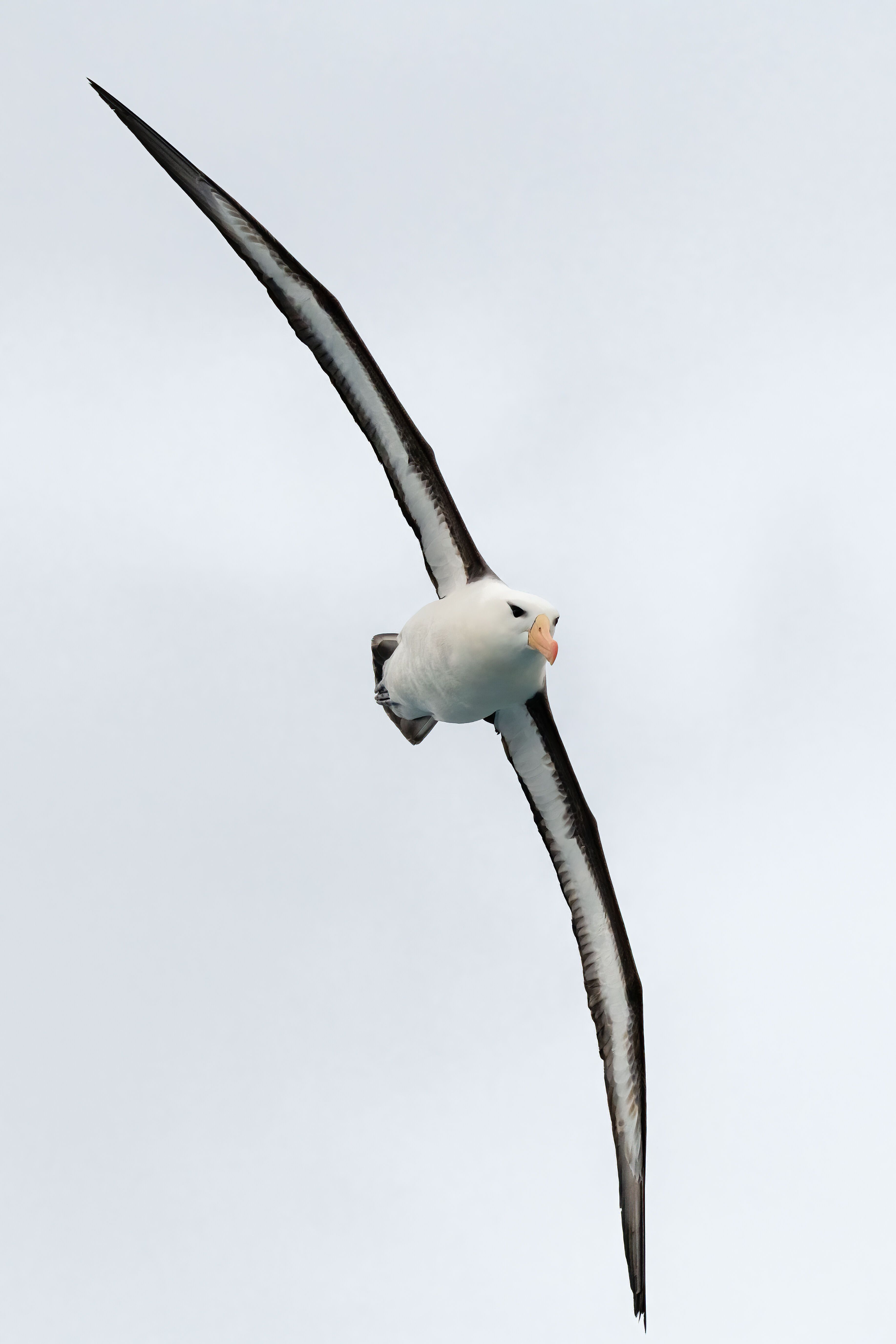 Immediately upon waking, we had spectacular views of six species of birds: southern and northern giant petrels, wandering albatrosses, southern royal albatrosses, white-chinned petrels, and black-browed albatrosses. Throughout the morning, everyone had a chance to view these massive, majestic birds that soar over the Southern Ocean with barely a flap of their wings. At some points, more than 15 birds were following National Geographic Explorer as we sailed south. They passed by at eye level on our upwind side, staring into our eyes as they flew. We looked on in awe as the largest birds in the world, the wandering albatross, smoothly glided past us with wingspans of up to 11.5 feet. Later in the day, we were joined by smaller relatives of the albatross: soft-plumaged petrels, black-bellied storm petrels, and blue petrels. These small birds flitted over the waves. Their movements appeared erratic to our eyes, which are unable to see the gusts of wind upon which the birds fly.