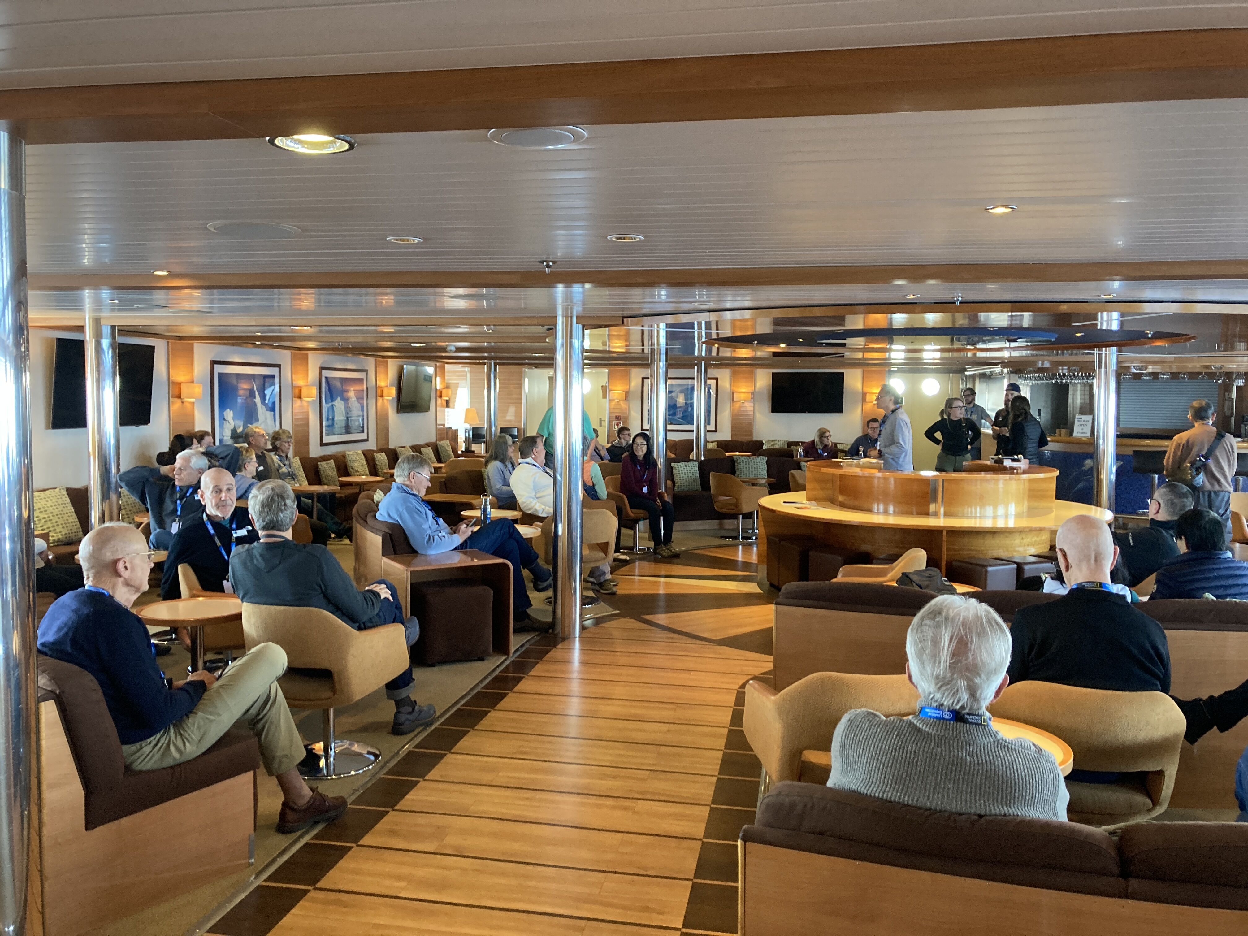 After breakfast, we were introduced to the entire expedition team and the on-board scientists and to the concept of an expedition. We had the opportunity to sign up for Zodiac groups, and as the day progressed, our enthusiasm and growing anticipation of sights to see and look out for expanded.