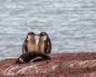 This morning, we had a later start than usual after a late night enjoying the crew show. Our galley team gifted us with a fulfilling brunch. We then had a brilliant forum about climate change with the participation of our panel of experts onboard. Afterward, our expedition leader called us to the bow to see Cape Horn, which was only a few miles ahead. The good weather allowed us to have a smooth and fast crossing, allowing extra time to swing by Cape Horn, the most southern tip of the Americas. Over the PA system, Steven provided a very interesting description of the historical importance of this area, then Pablo read a beautiful poem, a memorial to the seaman lost at sea. We could see the monument in the distance, two metal sheets that depict an albatross in flight. During the afternoon, we enjoyed Madalena’s presentation about Women in Antarctica. This was an incredible voyage through the struggles and delays of allowing women to participate in science and logistics in Antarctica. We entered the Beagle Channel around 17:00 and we encountered black-browed albatrosses, cormorants, dolphins, and whales. On our final approach to the beautiful city of Ushuaia, we passed by Les Eclaireurs Lighthouse and some of the seals that live in the Bridges Islands Archipelago.
