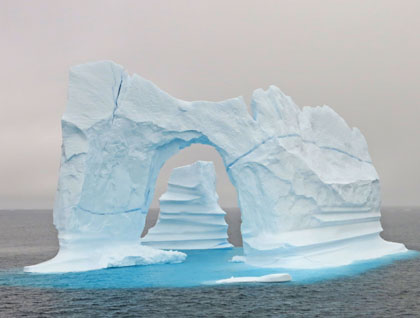 Here and there large icebergs were breaking the scenery of water and flat ice. One big iceberg had a beautifully shaped arch. Captain Oliver piloted the ship around this rare formation to let everyone get a perfect view.