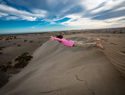 After anchoring in the late afternoon near the rugged Pacific lagoon entrance of Boca de Solidad, we piled into our wonderful Zodiac boats and went ashore for an exploration of the barrier island called Isla Magdalena. The combination of spectacular pastel light, playing on the enormous sand dunes and walking the pristine Pacific beach were just what we all needed after a day aboard our ship home. The reds, purples, deep blues, and yellows of sunset were then the cap on this beautiful day and as the sun set into the western ocean there were nostalgic moments where many of us thought of loved ones back home with whom we would love to share this incredible experience.