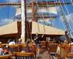 After lunch, we set sail at 2:15 p.m. At 3:30 p.m., Sophia and Angelos gave a very informative talk on the pantheon of gods from Greek mythology. Conditions suddenly presented themselves, and we were able to board Zodiacs and take photos of Sea Cloud under sail. After afternoon coffee and cakes, Lauren gave a very useful introduction to the iPhone camera and its possibilities. Next, we are sailing to the culturally significant island of Delos, the birthplace of the twin gods Apollo and Artemis.
