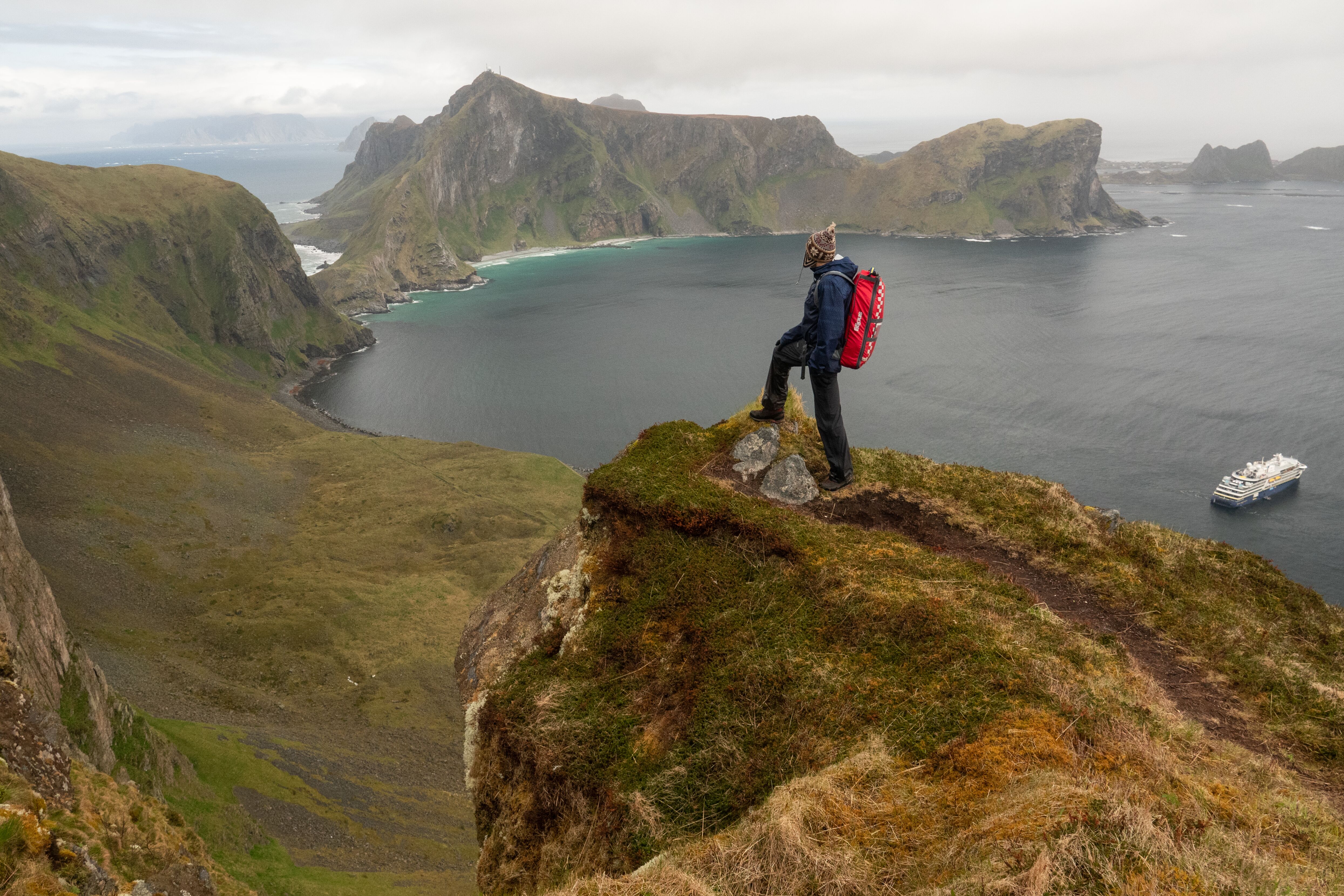 Yet again we awoke to a gorgeous morning. Around the ship clear blue skies and mirror calm waters and off to the east, a bank of low cloud. Those who work or live in these parts often mention how unusual this weather window is.