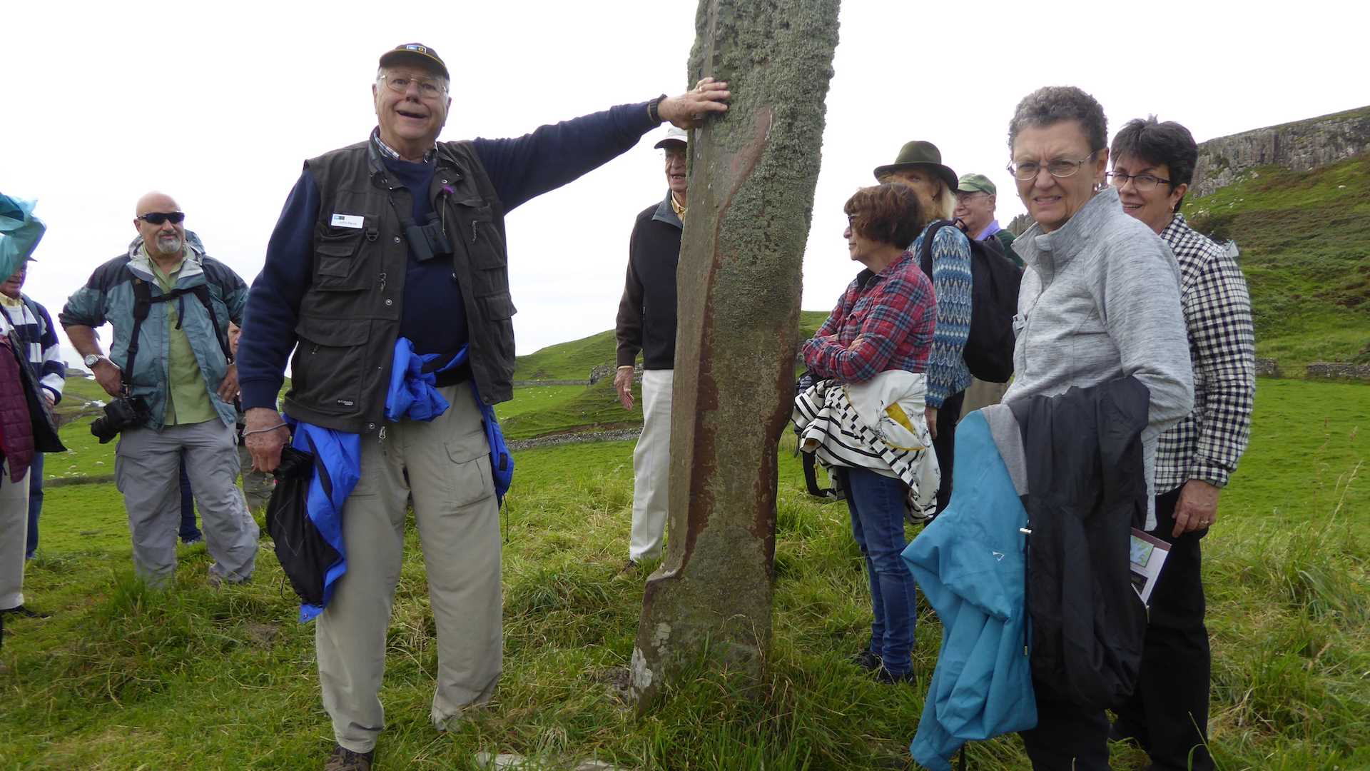 Konia offered a walk with information on life and wildlife on the island today and in the past. We discovered the history of Coroghon Castle, the three churches on the island, Canna house, and finished off at the Celtic cross at A’Chill with the pillory stone (see picture). This tranquil island is connected to the island of Sanday by a bridge and has a joint population of only 26.