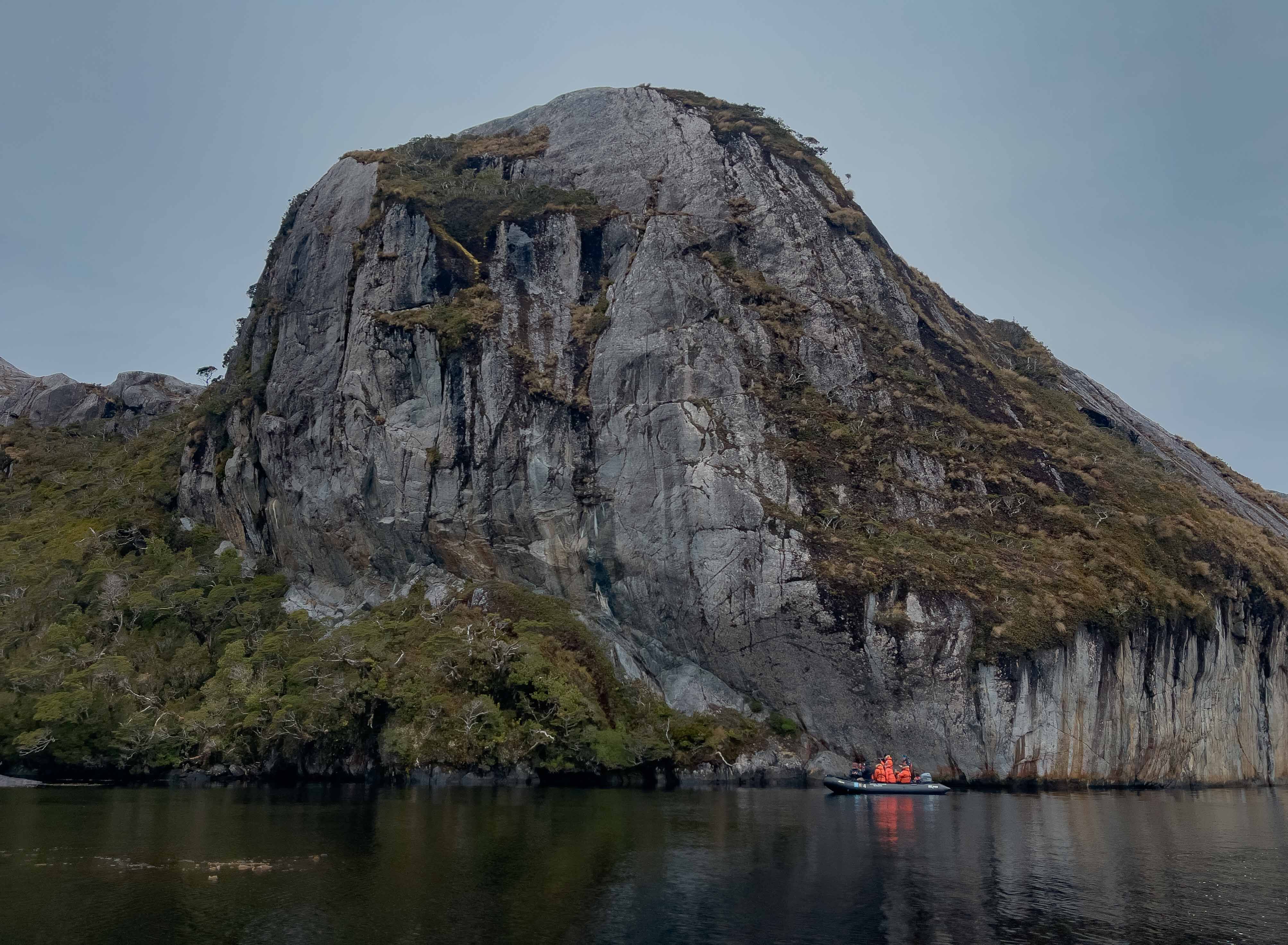 During a rare, perfectly still and windless morning, we landed at Jackson Bay, in Admiralty Sound to visit the most remote section of Karukinka Natural Park, a private protected area managed by the Wildlife Conservation Society. At 330 hectares, this area protects some of the southernmost forests, grasslands and peatlands of the planet together with a vast array of wildlife including several endemic bird species and a colony of breeding elephant seals. We hiked through large stands of primeval forest to get to a waterfall that drains the overflow of some alpine glaciers still blanketing the peaks that flank the valley we walked toward.