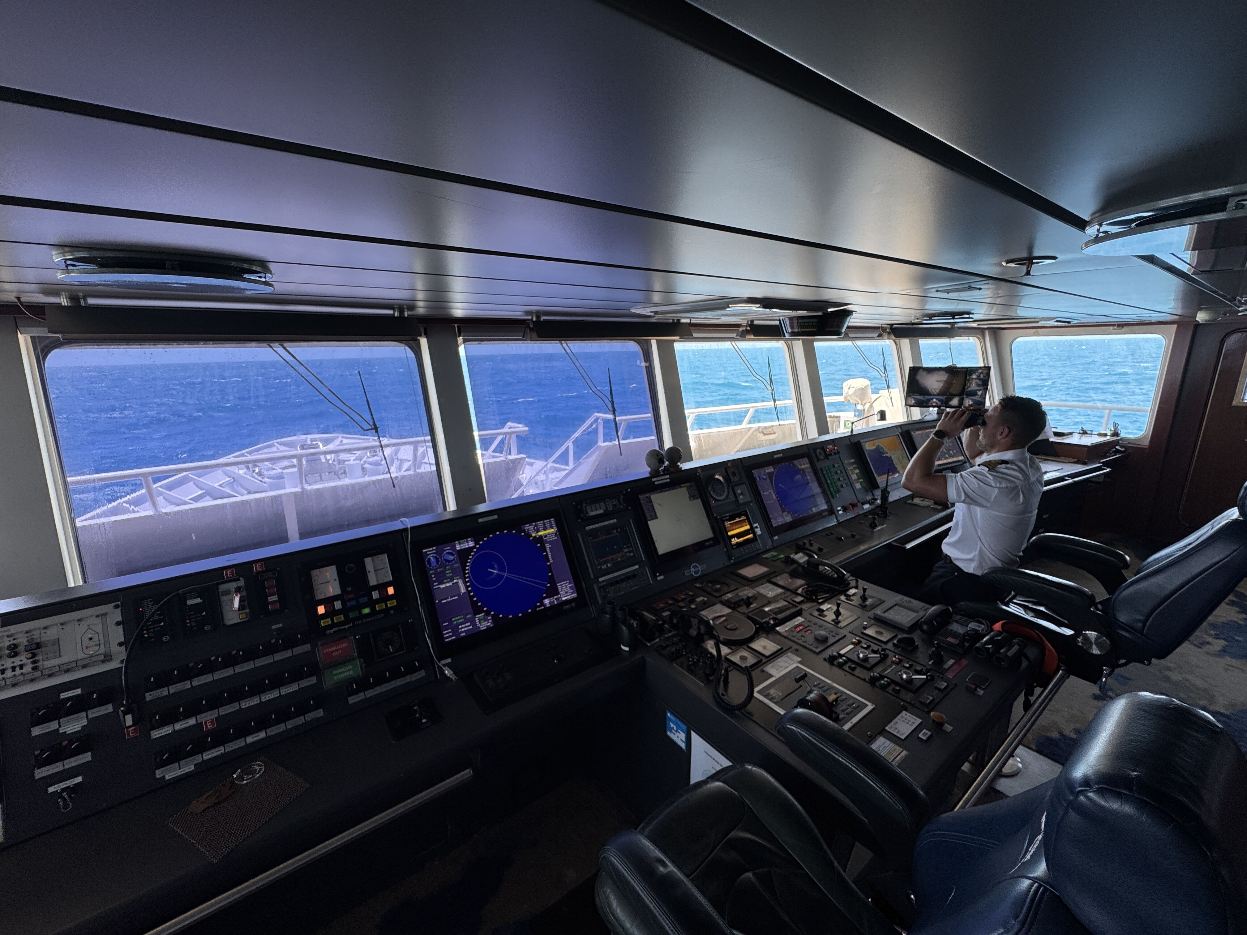 This morning, National Geographic Orion cruised through the shallow waters of the Torres Strait, its gentle swell soothingly rocking our vessel. It was a peaceful start to the day as we sailed in these remarkable waters.