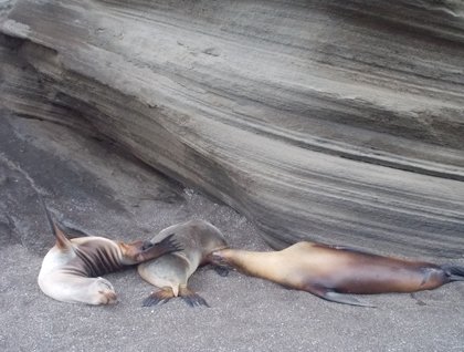 Seal researchers were camped on the rocks above, watching the area through long-range binoculars. They are studying many aspects of seal natural history. We spied some of the seals that have been outfitted with cameras and transmitters. There is concern about what will happen if the seals lose their safe iceberg pupping habitat if tidewater glaciers continue to retreat and eventually become land-locked.