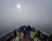 On the last full day of our voyage, we woke in Endicott Arm near the Dawes Glacier. We spent the morning enjoying Zodiac tours to the face of Dawes Glacier and watched multiple calving events. We were also able to spot several harbor seals, waterfalls, and a couple harbor porpoises on the way. After lunch we had the opportunity to participate in a polar plunge. Forty people decided to brave the frigid water for a short swim. Those of us not eager to jump into glacier water were able to watch from the bow. After the polar plunge, we warmed up on board as we started transiting towards Juneau. On the way, we stopped at a beautiful waterfall to once again admire the amazing natural beauty of Alaska. During our farewell recap, we were treated to a quick visit by a humpback whale. We ended our day with a slideshow made up of our favorite photos and memories of an amazing week on board National Geographic Quest .