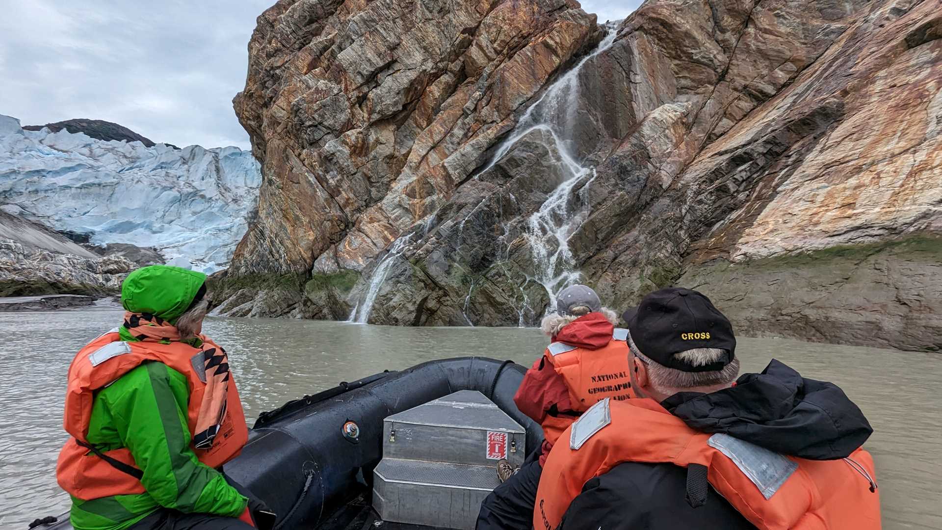 This morning we steamed into Tracy Arm, the north branch of Fords Terror Wilderness. After breakfast and a brief rain shower, some guests chose to paddle kayaks in the emerald-green waters of the fjord. Others took a Zodiac tour to explore the glacier and bountiful waterfalls deeper in the fjord.