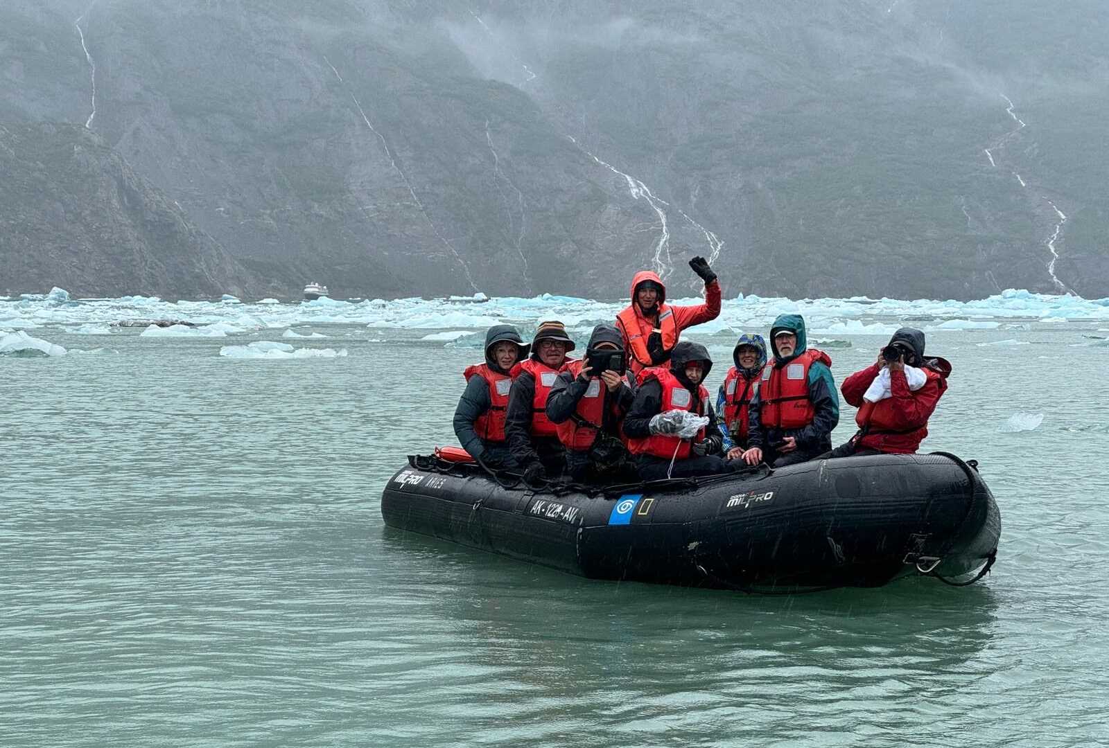 Our first excursion on Zodiacs took us to the face of South Sawyer Glacier where we observed natural ice sculptures and a plethora of curious harbor seals. Our afternoon consisted of a presentation on iPhone photography tips from Certified Photo Instructor Alex Rubenstein, an ice melt-off guessing competition hosted by Naturalist Kimberly Wood, and a bear safety briefing from Naturalist Zoey Greenberg.