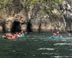 Zodiacs were dropped and our group was divided in half, each group taking an hour and a half traveling up the fjord to the face of Dawes Glacier. White thunder sounded from the face of the glacier, birds circled, and harbor porpoises showed their dorsal fins. Due to heavy rain, waterfalls of many sizes were everywhere.