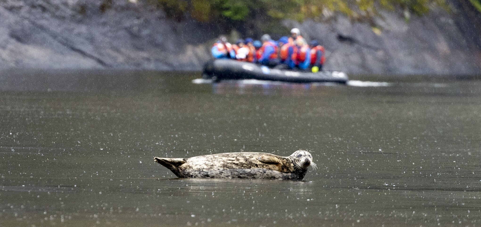 We began the day cruising into the breathtaking Tracy Arm Fjord surrounded by towering cliffs of rock and beautiful waterfalls. After breakfast, guests set out on two thrilling rounds of Zodiac tours, zipping through a maze of icebergs in all shapes and shades of blue—some small and delicate, others massive and glowing deep blue.