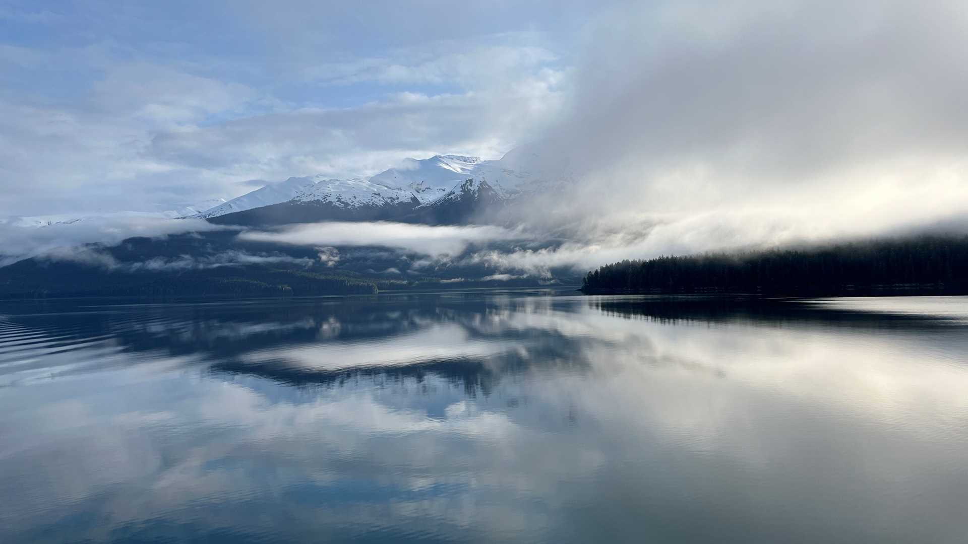 Early morning sailing through Fords Terror Wilderness Area boasted spectacular views. Wispy, low hanging clouds hugged the cracks in the mountainside of the glacial fjord we navigated. The waters have a distinct turquoise green tint, and the calm surface reflects the mosses, lichens, and trees on the shoreline.