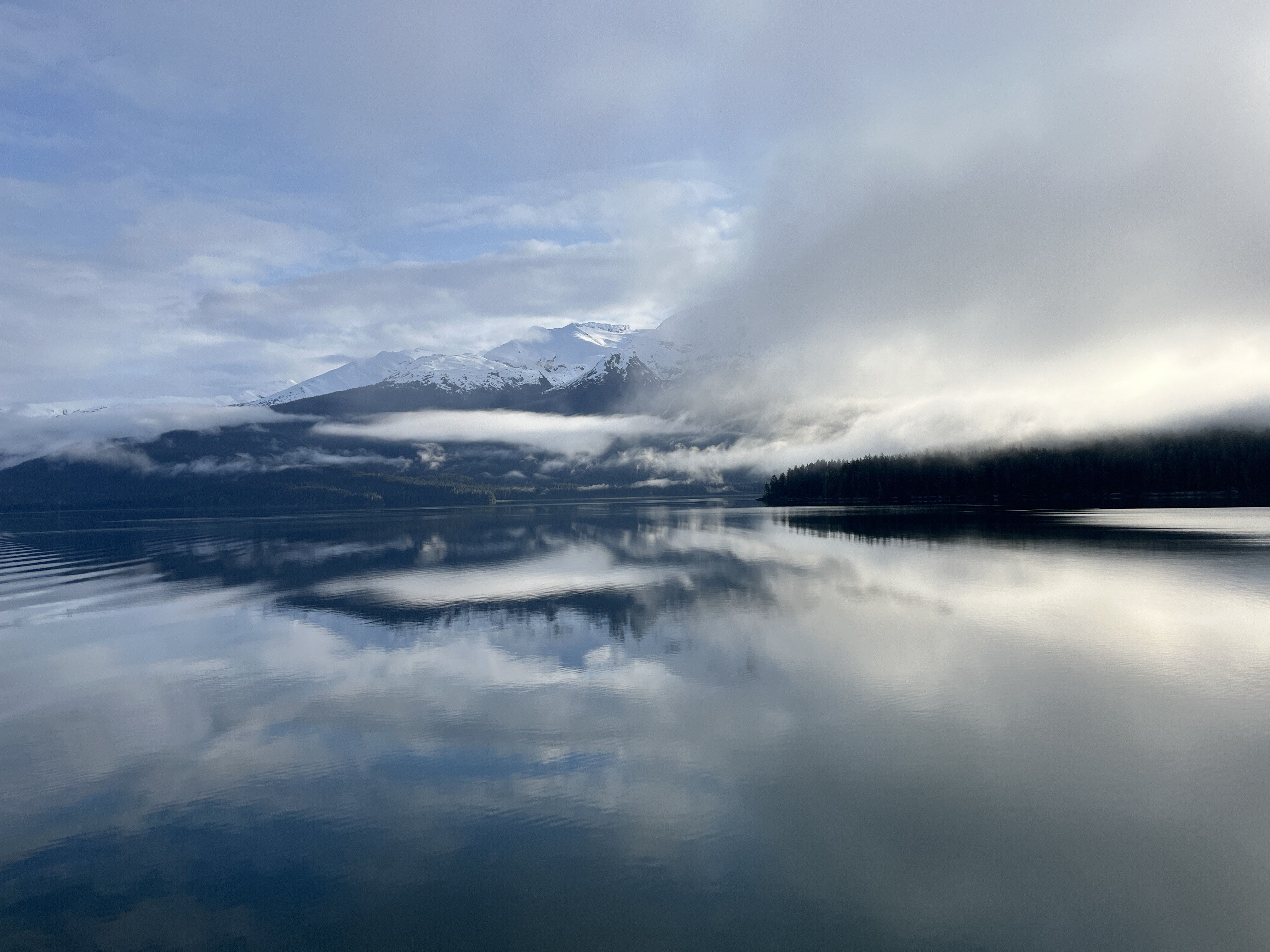 Early morning sailing through Fords Terror Wilderness Area boasted spectacular views. Wispy, low hanging clouds hugged the cracks in the mountainside of the glacial fjord we navigated. The waters have a distinct turquoise green tint, and the calm surface reflects the mosses, lichens, and trees on the shoreline.