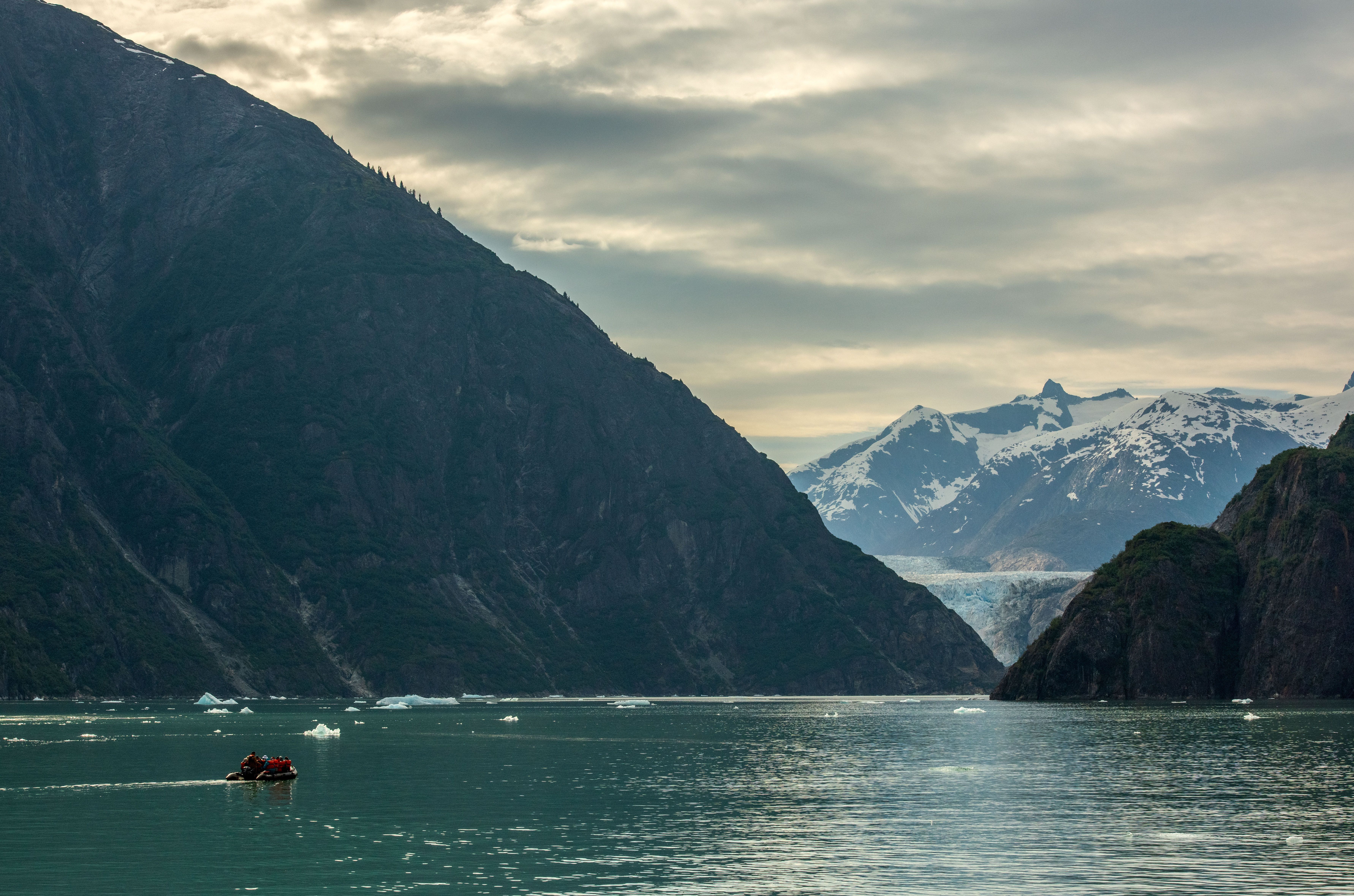 Early this morning, National Geographic Sea Bird turned out of Stephens Passage and into Holkham Bay, which marks the entrance to the Tracy Arm-Fords Terror Wilderness area. This vast track of wilderness received Congressional protection in 1980 and encompasses 653,179 acres. Our day was spent traveling up Tracy Arm in hopes of reaching the face of South Sawyer Glacier.