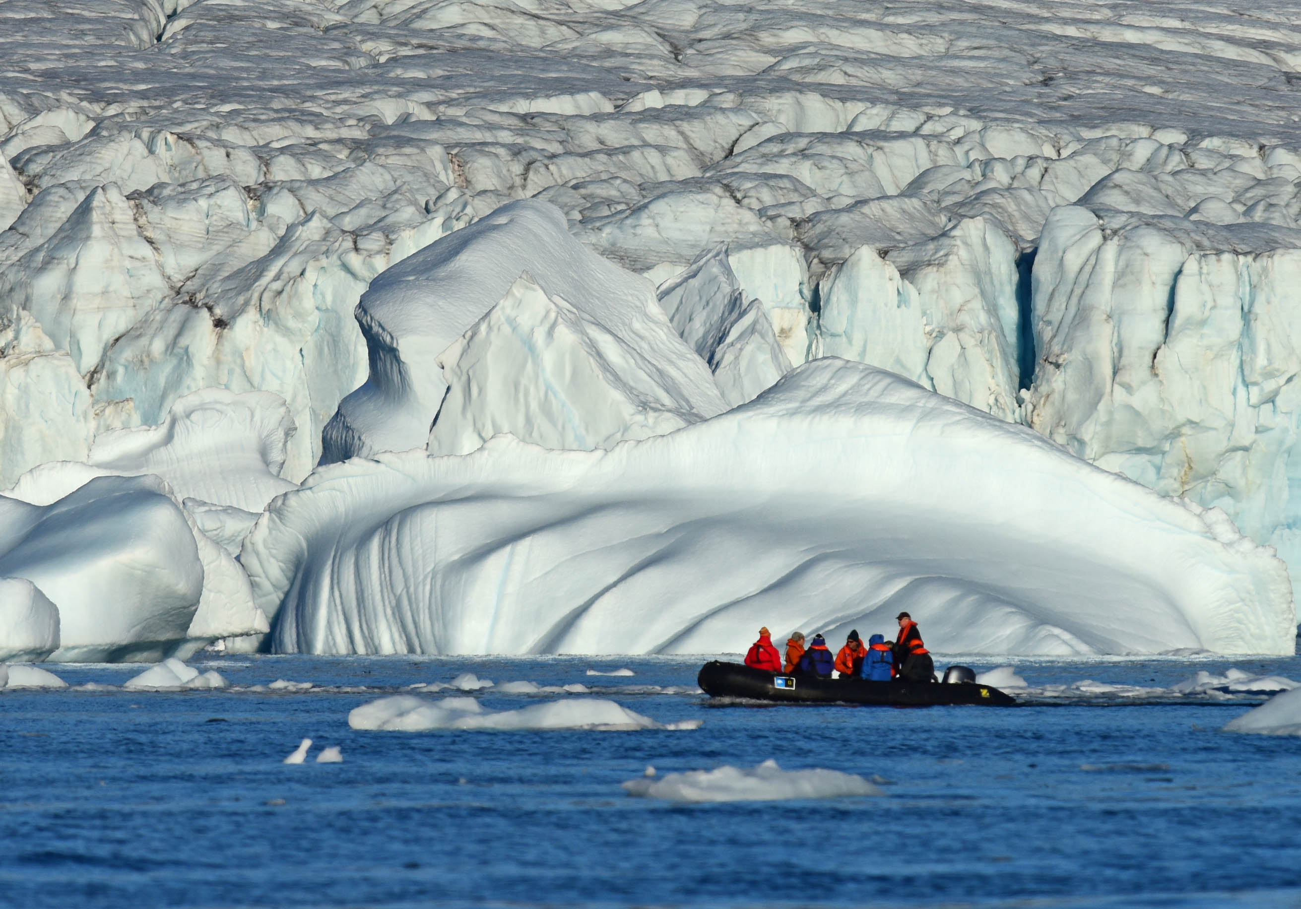 Our activity for the afternoon was to have our first small boat ride to experience the ice and view the tidewater face of South Sawyer Glacier.  As we slowly progressed from the ship further into the fjord the rugged broken face and front of the glacier came into view.  Even with a light rain it was spectacular to get the experience of being surrounded by glacier ice and to see, occasionally the booming sound and crash of ice coming off the vertical glacier face.