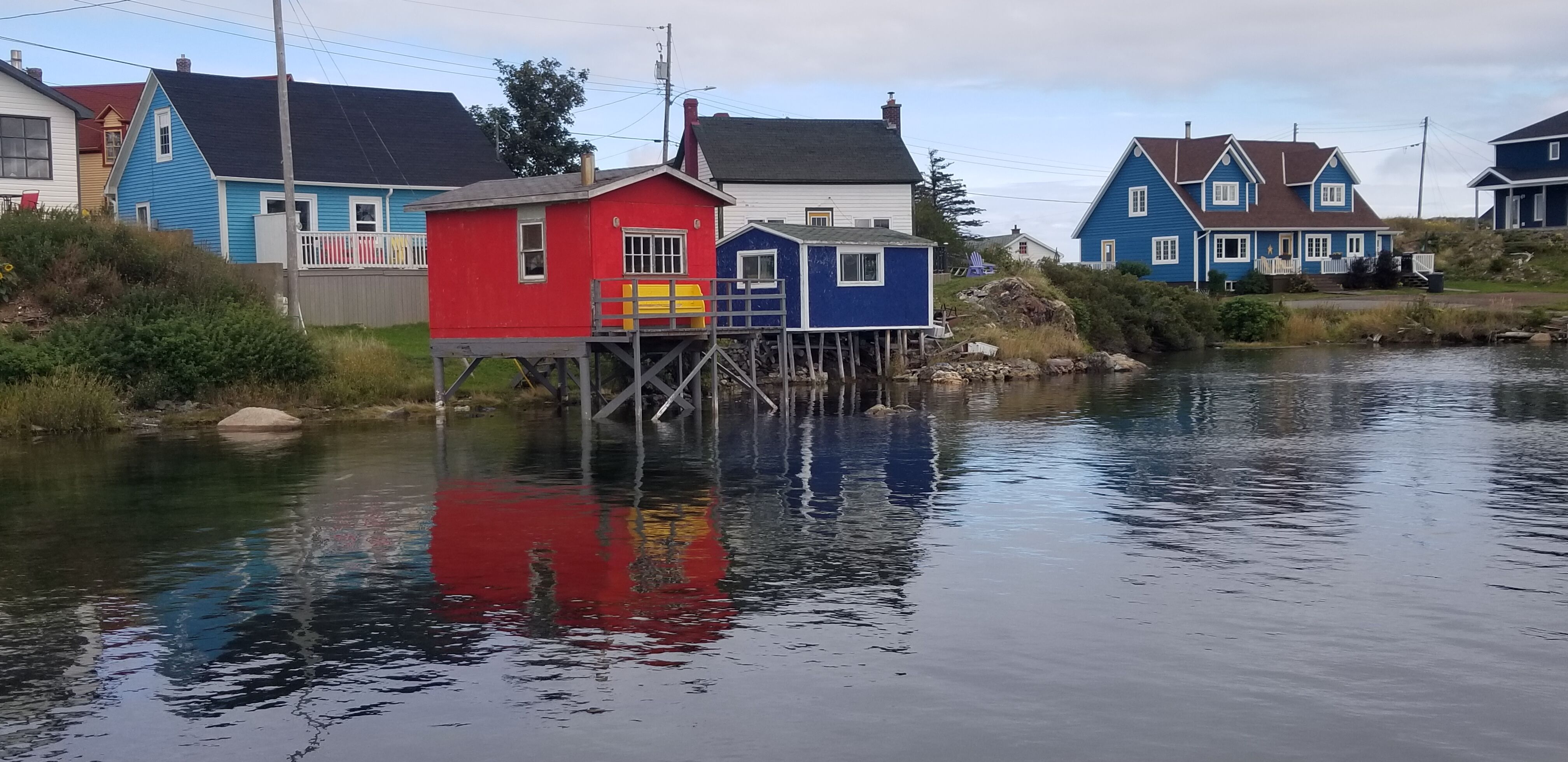 We spent another fine day in Twillingate, a community of 2,000 folks on a five-mile-long island on the east coast of Newfoundland. The guests split up into different walking groups led by the natural history staff. Several adventurous folks hiked up the hill outside of town to observe an overlook over the whole community strung out along the bay. Other groups went on nature and photo walks on the outskirts of town. We walked across the metamorphic rocks on this extension of the Appalachian Mountains, admiring the colorful layers and quartz veins. There were many brightly colored buildings, wood crab traps, and quaint fishing boats along the harbour. Sprinkled throughout the town were several churches and cemeteries of different sizes and shapes. Most surprisingly, we observed wild and domesticated flowers everywhere.