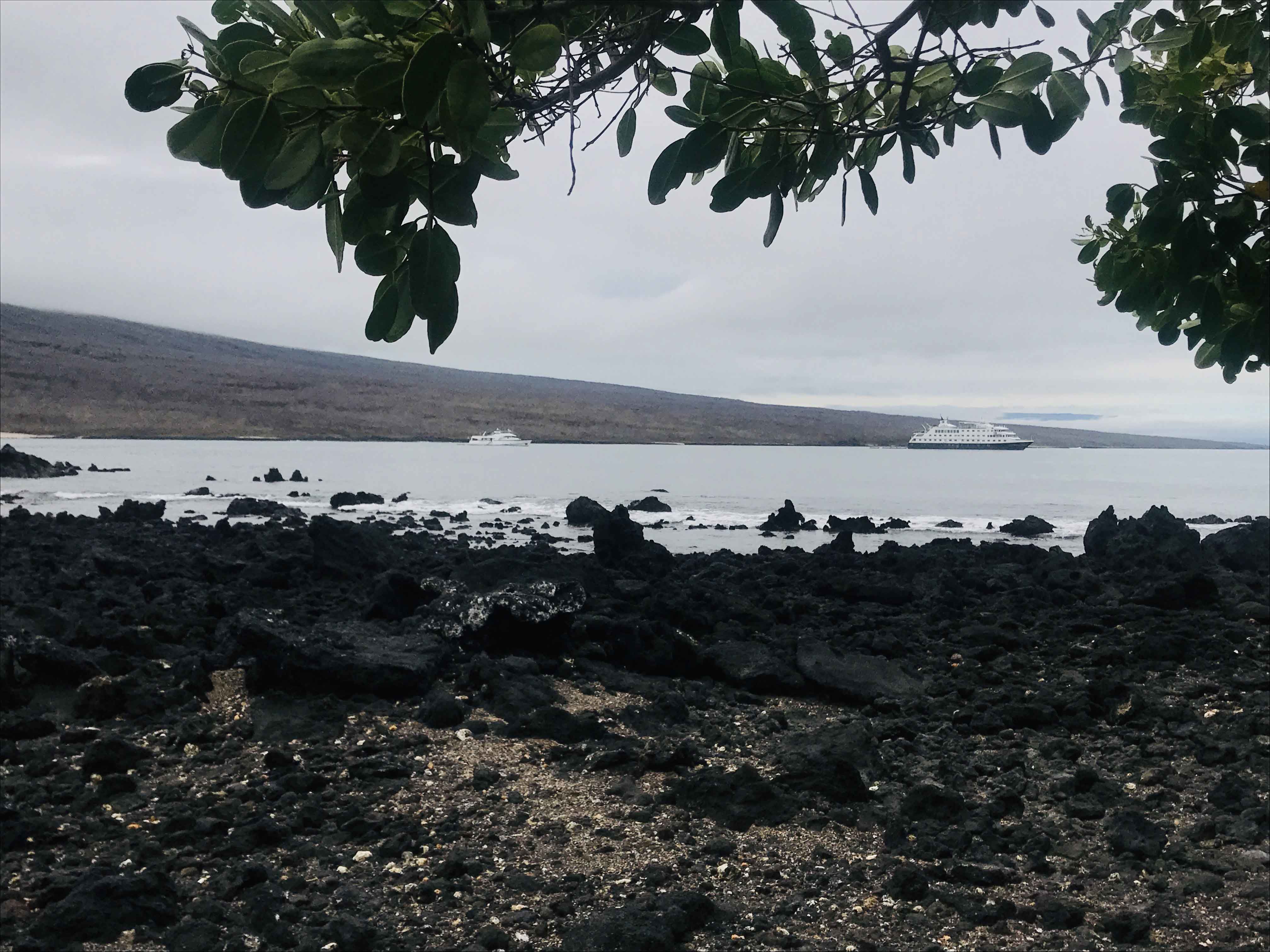 Today was an incredible day of activity and movement! As Grosvenor Teacher Fellows, we began the day by embarking on a long hike in Urbina Bay on the Isabella Island of the Galapagos. Immediately upon our wet landing, our naturalist, Anahi, spotted a majestic Galapagos hawk posing for its visitors on a large log pillar along the white, sandy beach. Hidden in plain sight, marine iguanas camouflaged into the black, volcanic, basaltic rock. We had to utilize our biomimicry skills of scrambling over the jagged rocks like hermit crabs. After braving the rock climb, we descended into a lush, yet spiky terrain including the scutia shrub and the poison apple tree. In a quest to satisfy our competitive natures, we embarked on a friendly, but very serious game to sight more brightly colored land iguanas than our neighboring naturalist Jose’s group. In case you are wondering, we won! Also, not only did we see land iguanas, we had our first encounter with the Alcedo Volcano giant tortoise. After our hike, we enjoyed a local Ecuadorian lunch including yuca, white papaya, sweet cucumber, ceviche, sweet potato, and our favorite, tres leches. It is obvious that Lindblad Expeditions is committed to sustainability and to highlighting the incredible cuisine of this diverse region.