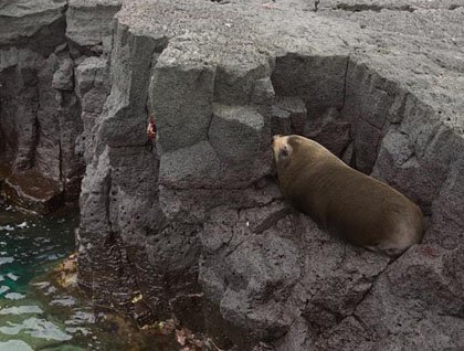 Some guests opted to go for a second round of kayaking instead of the walk. This latter outing was very successful, for our kayakers had the chance to cover a long distance admiring the striking volcanic landscape and looking for wildlife. Many blue footed boobies, Brown pelicans, Galapagos sea lions and penguins were seen along the coastline.