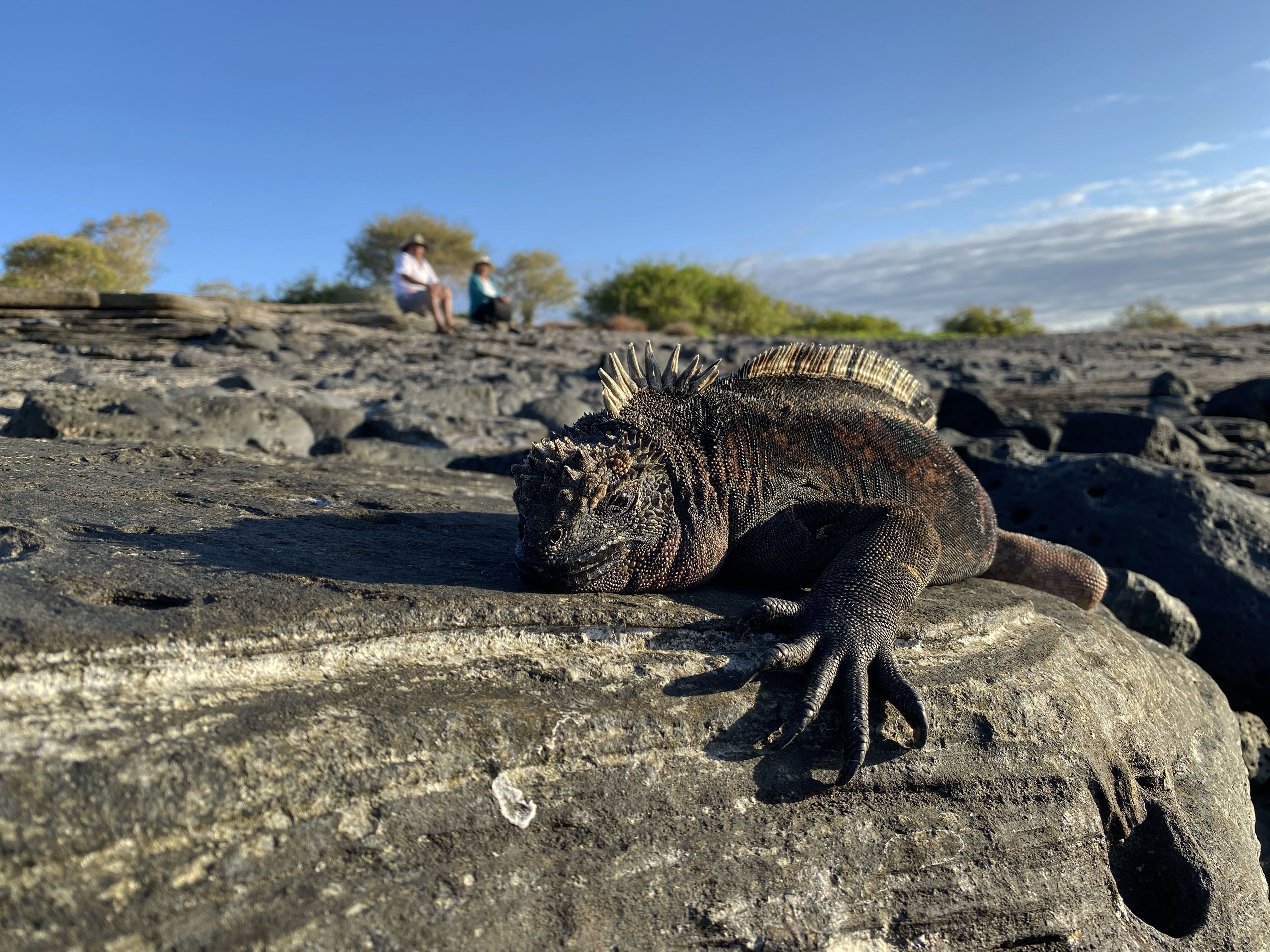 National Geographic Endeavour II arrived at the west coast of Isabela Island early in the morning, and we began our visit to Urbina Bay. After a wet landing, a trail of lush vegetation gave us the opportunity to find various species of Darwin’s finches flying and eating on the ground. While we walked along this trail we noticed the presence of marine remnants, like seashells, as this part of Isabela was abruptly uplifted about fifteen feet in 1954. This site is a great spot for finding land iguanas near the trail, as early in the morning they are warming up their bodies on the land. Then we encountered the biggest surprise: Galapagos giant tortoises walking and resting along the sandy trail. After this interesting hike, we had time to enjoy the beach of Urbina Bay.