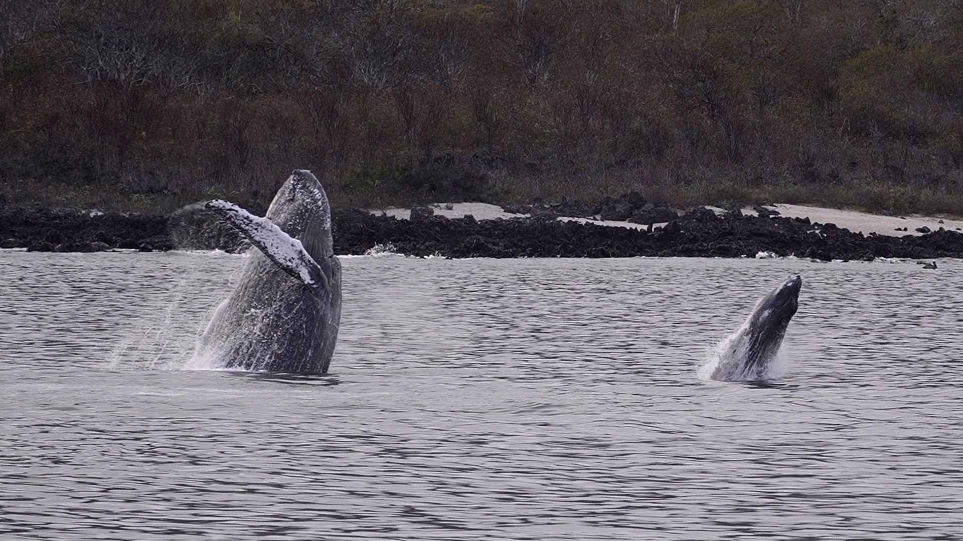 Every day, this magical archipelago is enthralling and brings joy and amazement to our lives. Today was not the exception, for we started this day with a spectacular sighting! A huge humpback whale was spotted with her baby at close range from the ship, just within a few minutes after we anchored in front of Urbina Bay.